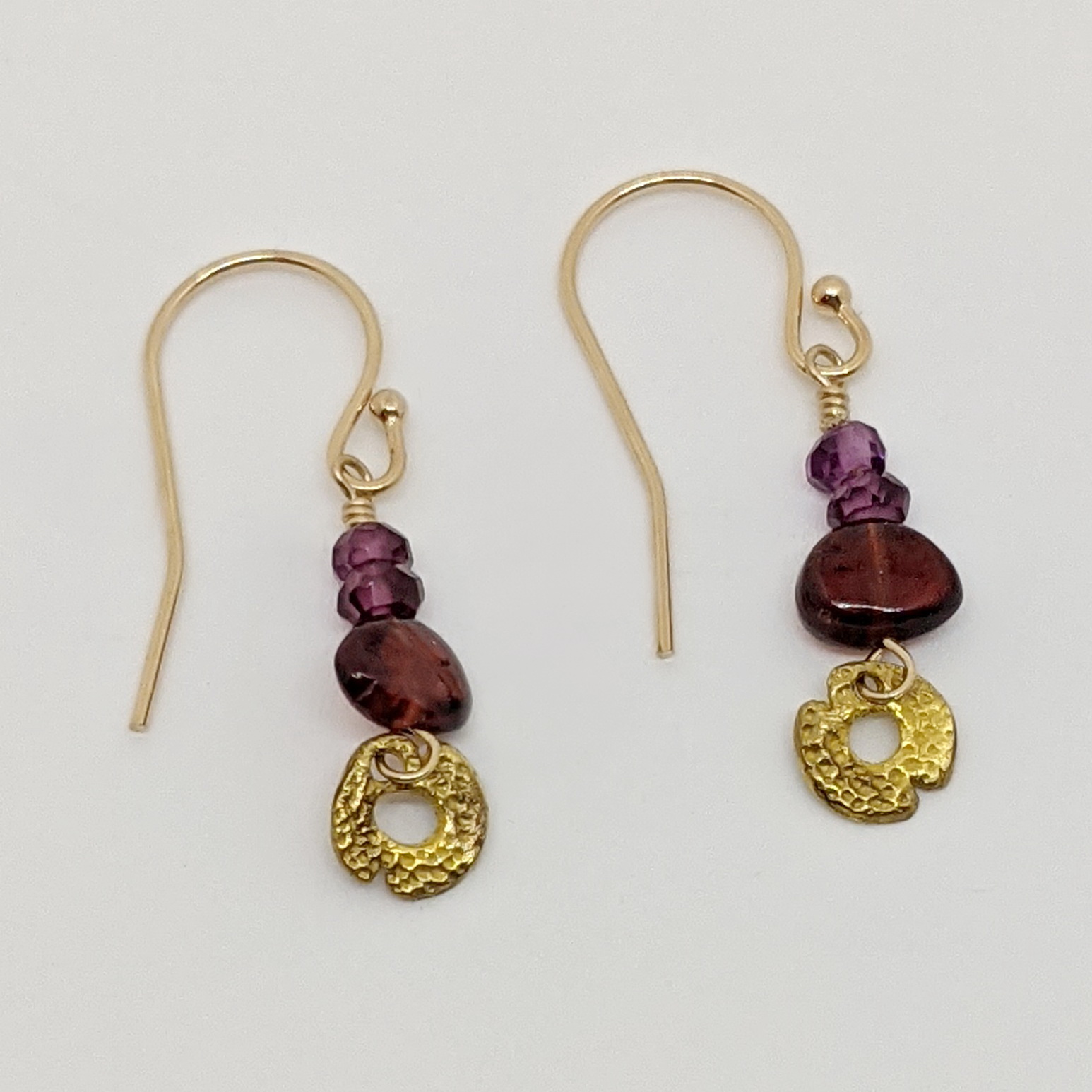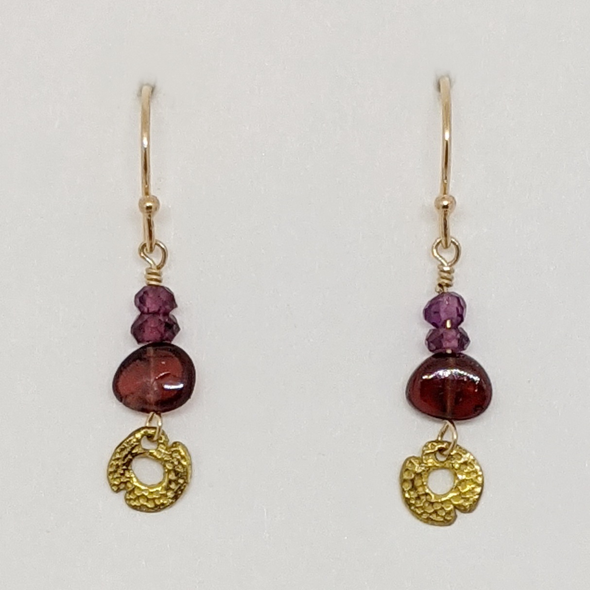22kt. Gold, Garnets, 14kt. Gold Earring Hooks