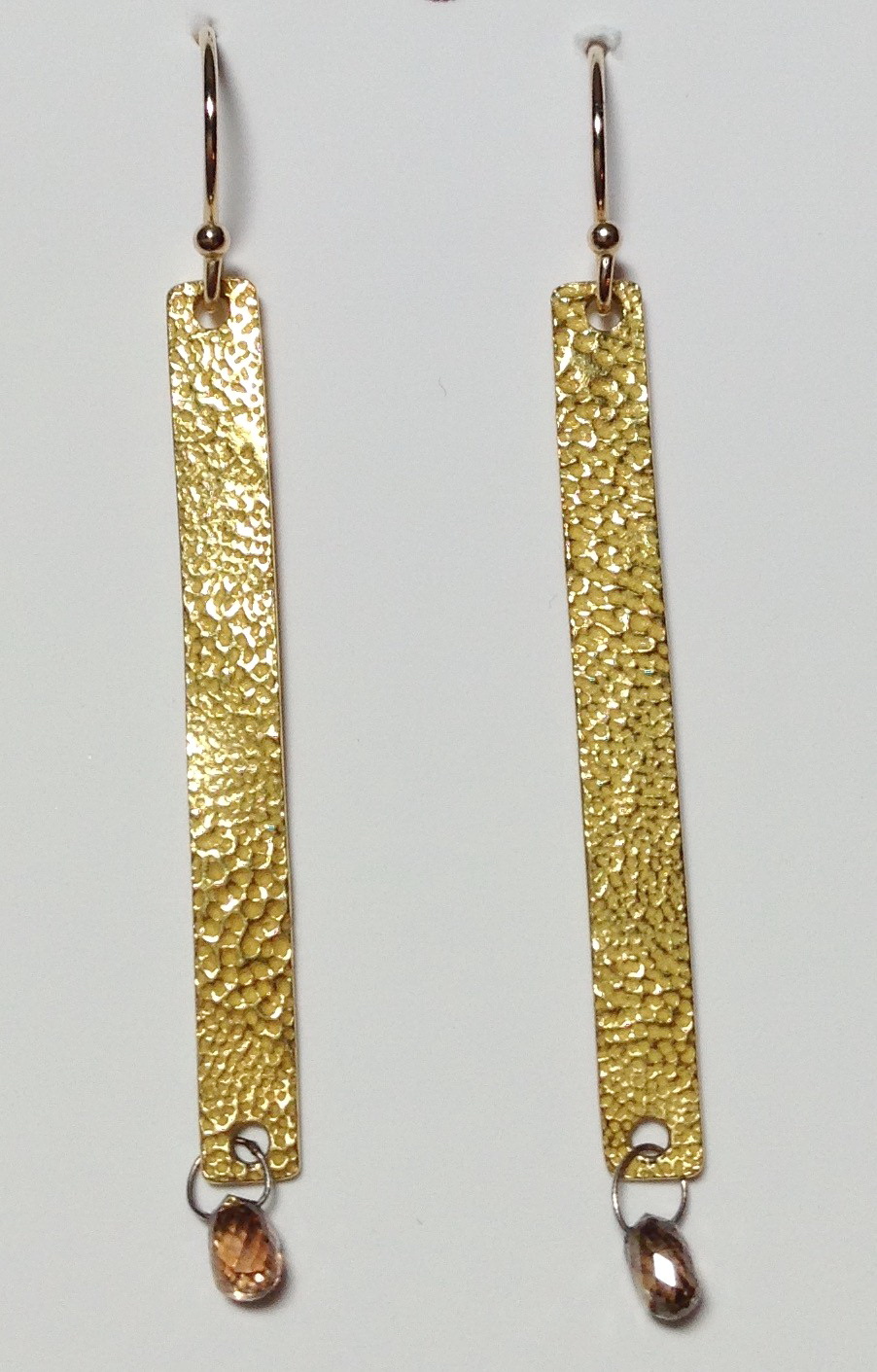 22kt. Gold Long Textured Earrings with Diamond Drops by Veronica Stewart
