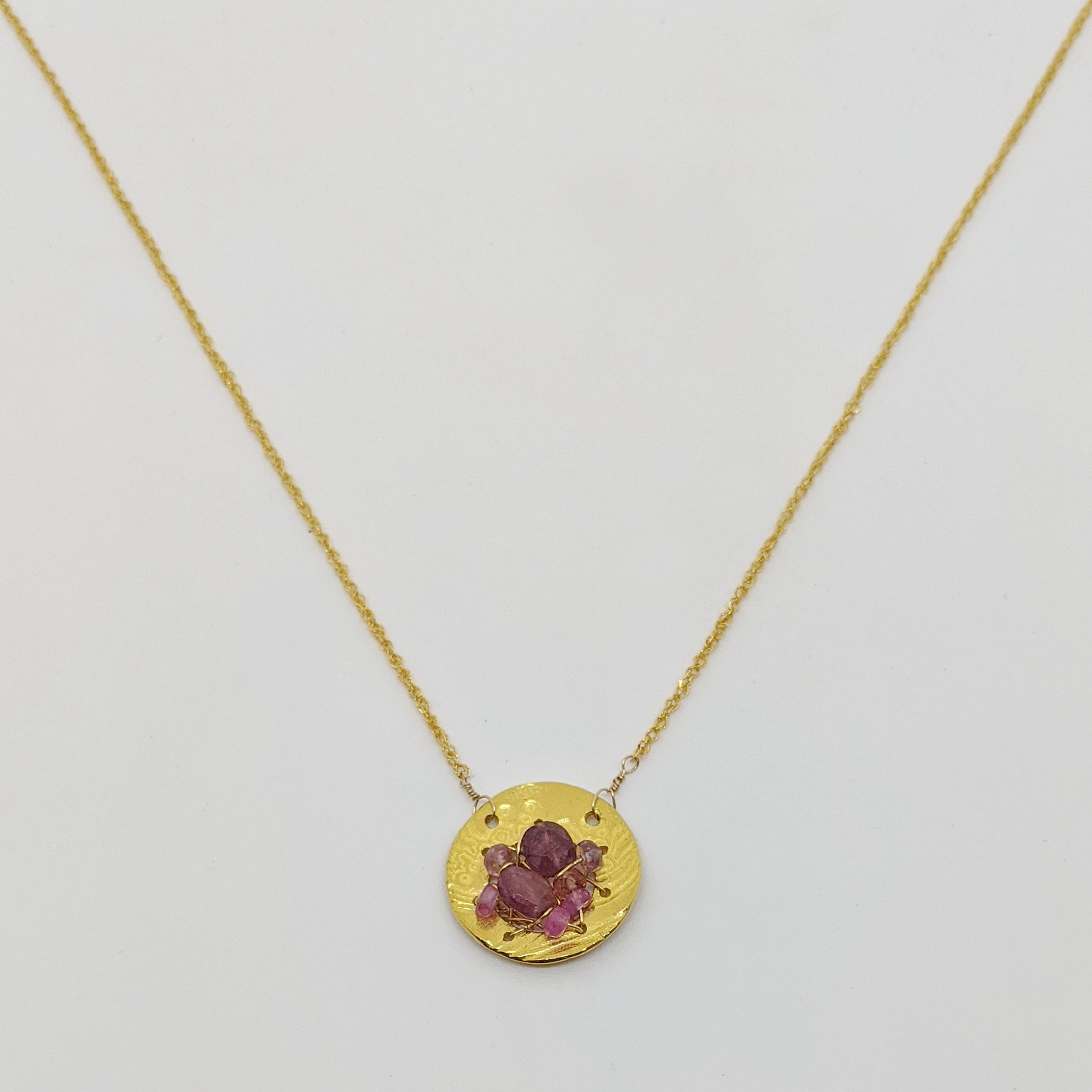 22kt. Gold Pendant on 14kt. Gold Fine Chain with Pink Tourmaline by Veronica Stewart