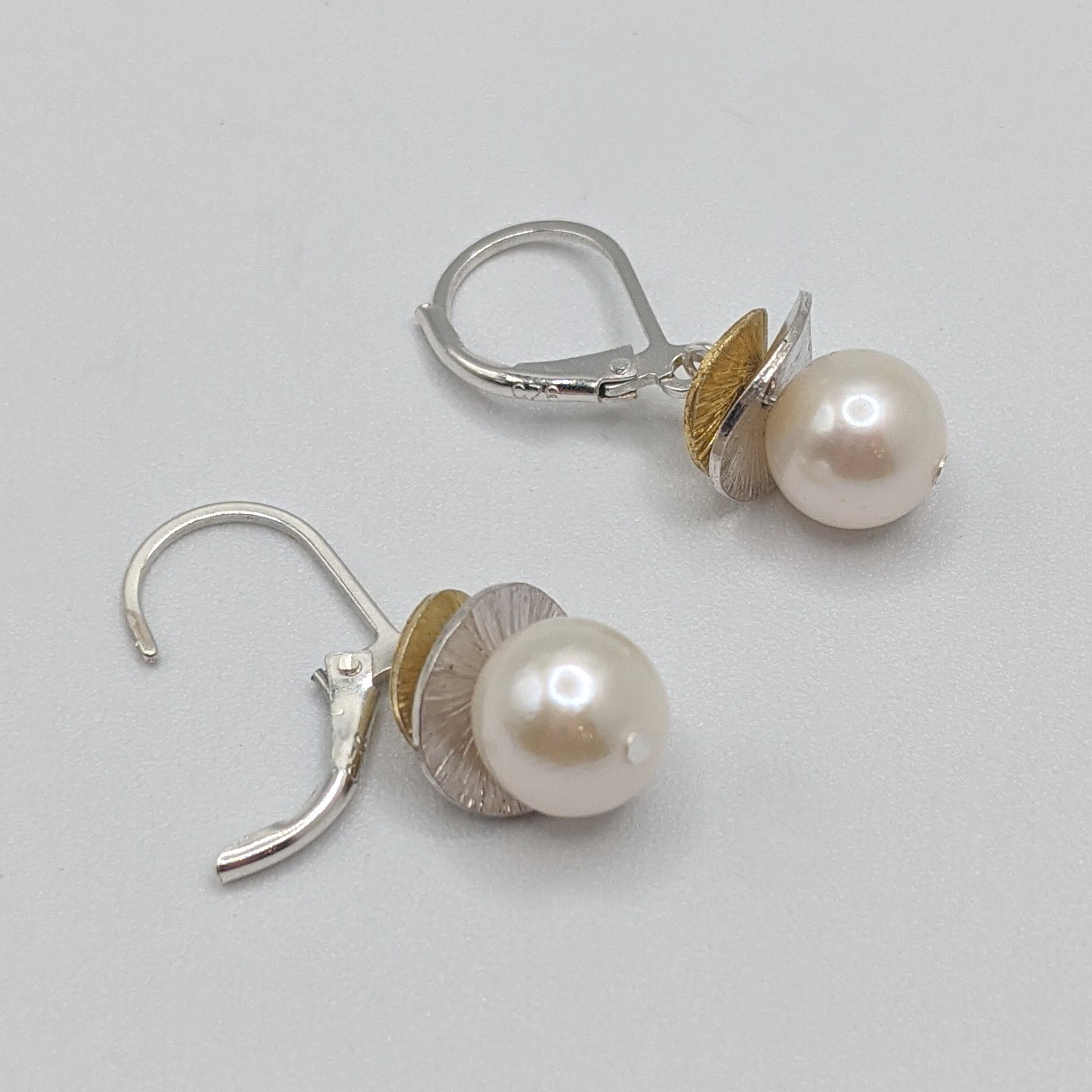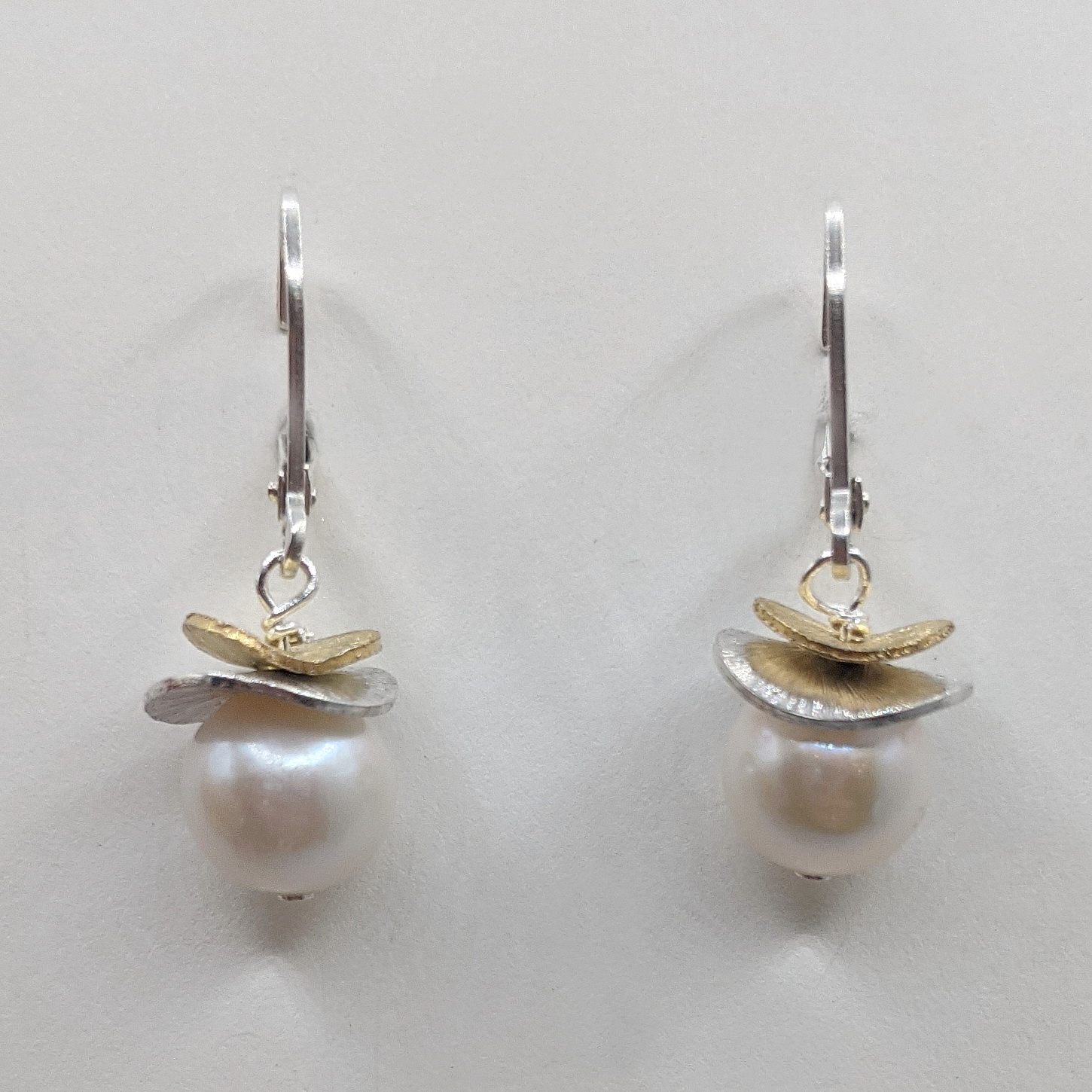Acorn Double Brushed Petals with White Pearl Earrings by Chi’s Creations