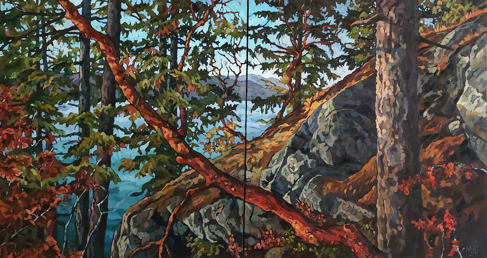 On the west side of Lighthouse Park in West Vancouver, there are a series of small trails that lead away from the main path out to the water. It is an area of the park that is not frequently hiked, and it offers a wonderful vantage looking towards Bowen Island. The light on this particular day was stunning – it was a late fall afternoon and the arbutus trees and grasses were bathed in dramatic golden tones. I always have a camera in hand when I hike the park, and it was during a magical fall day last year when I captured this image. – Mary-Jean Butler