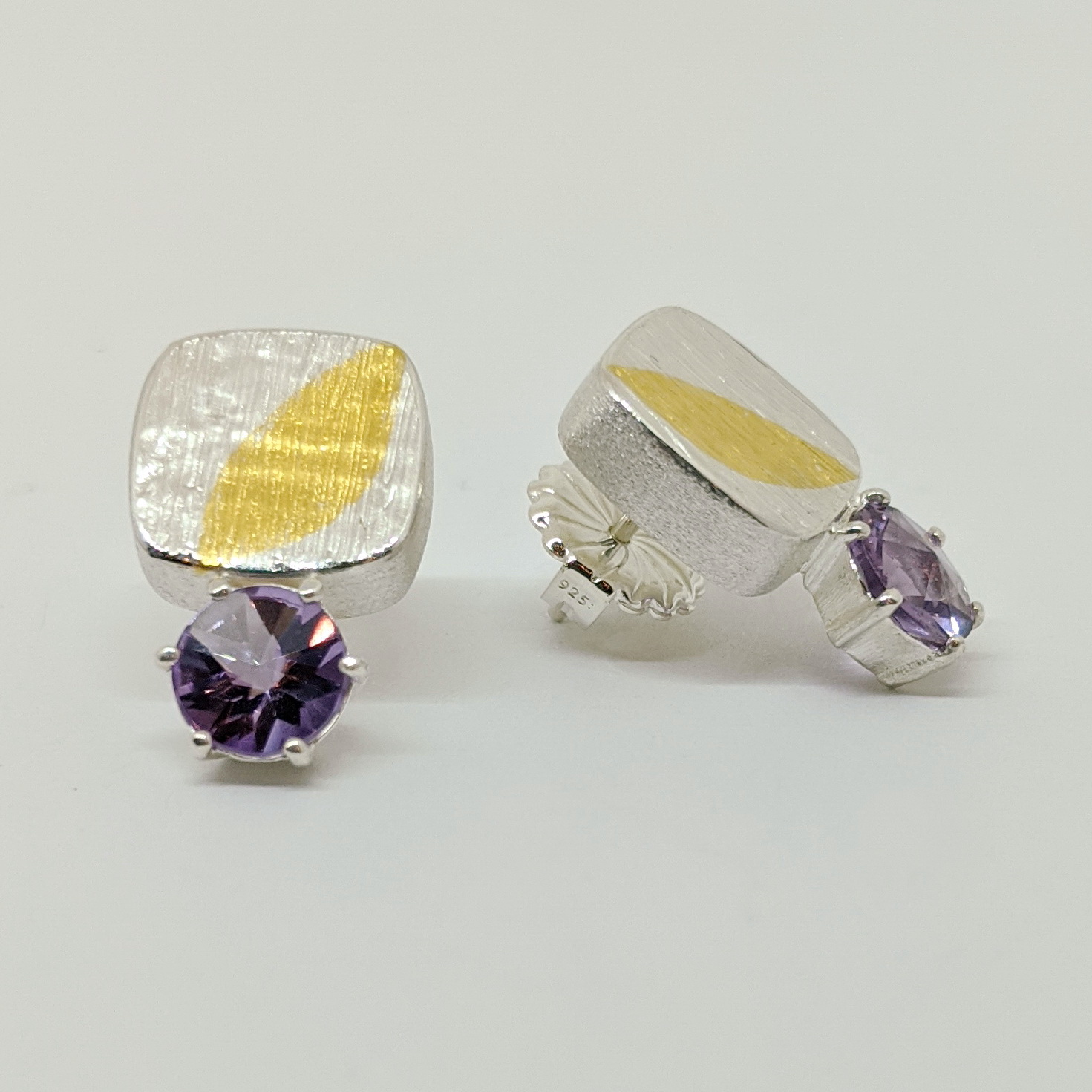 Sterling Silver, KeumBoo, Amethysts (total of 2 carats)