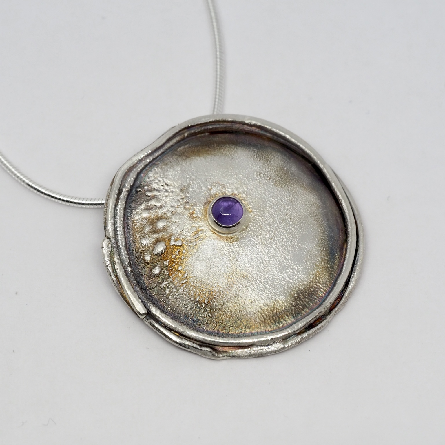 Sterling Silver (Oxidized), Amethyst stone (0.2in. diameter), Sterling Silver chain
