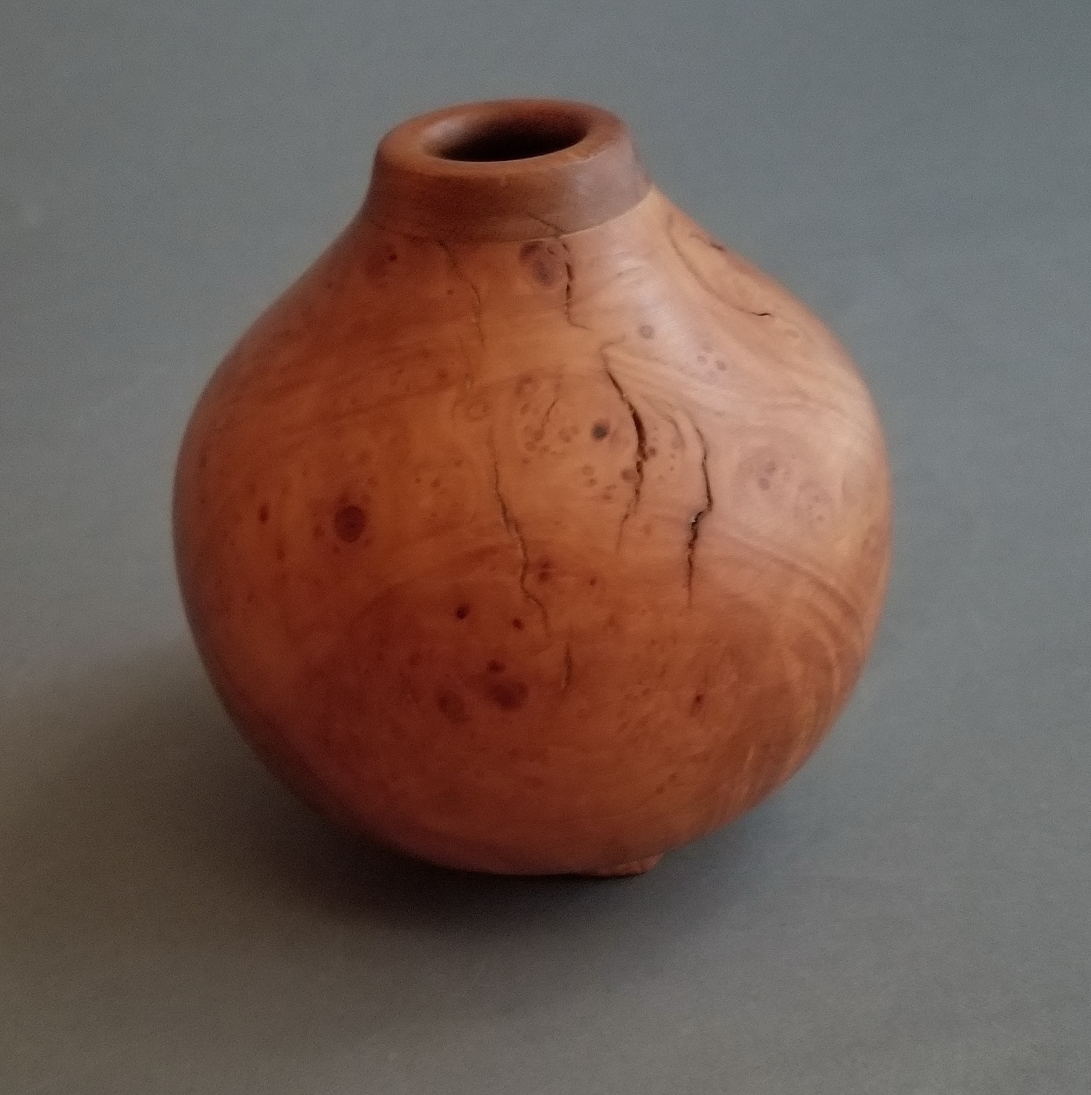 Arbutus Burl Hollow Form with Walnut Lip by Robert Wilman