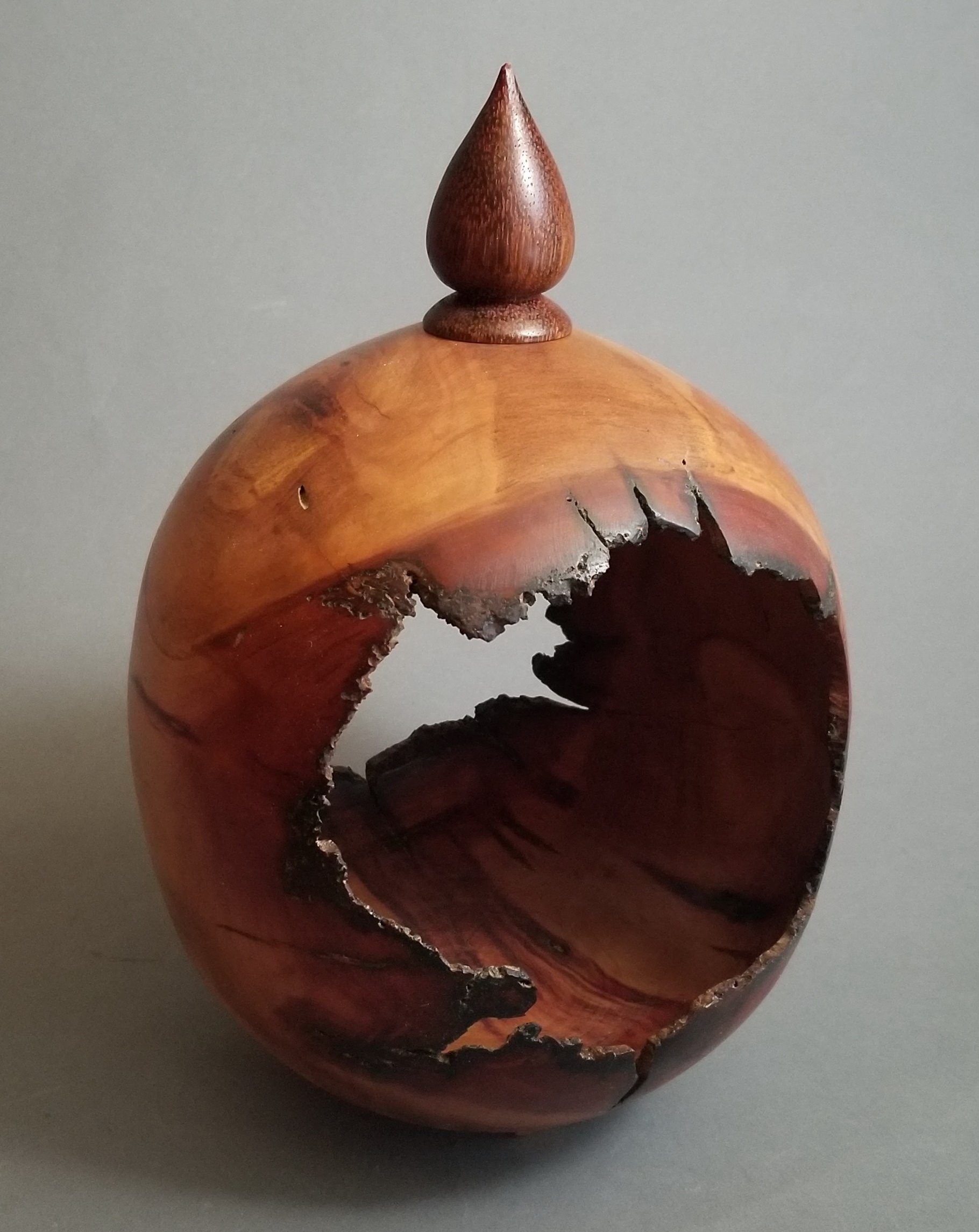 Walnut, dyes, acrylics, pyrography