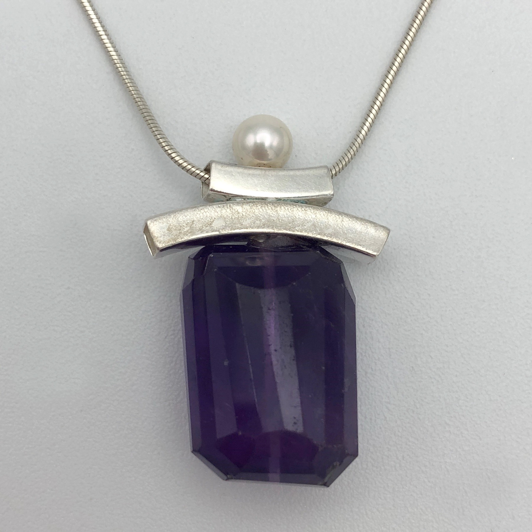 Balanced Double Tube Necklace with White Pearl & Amethyst by Chi’s Creations