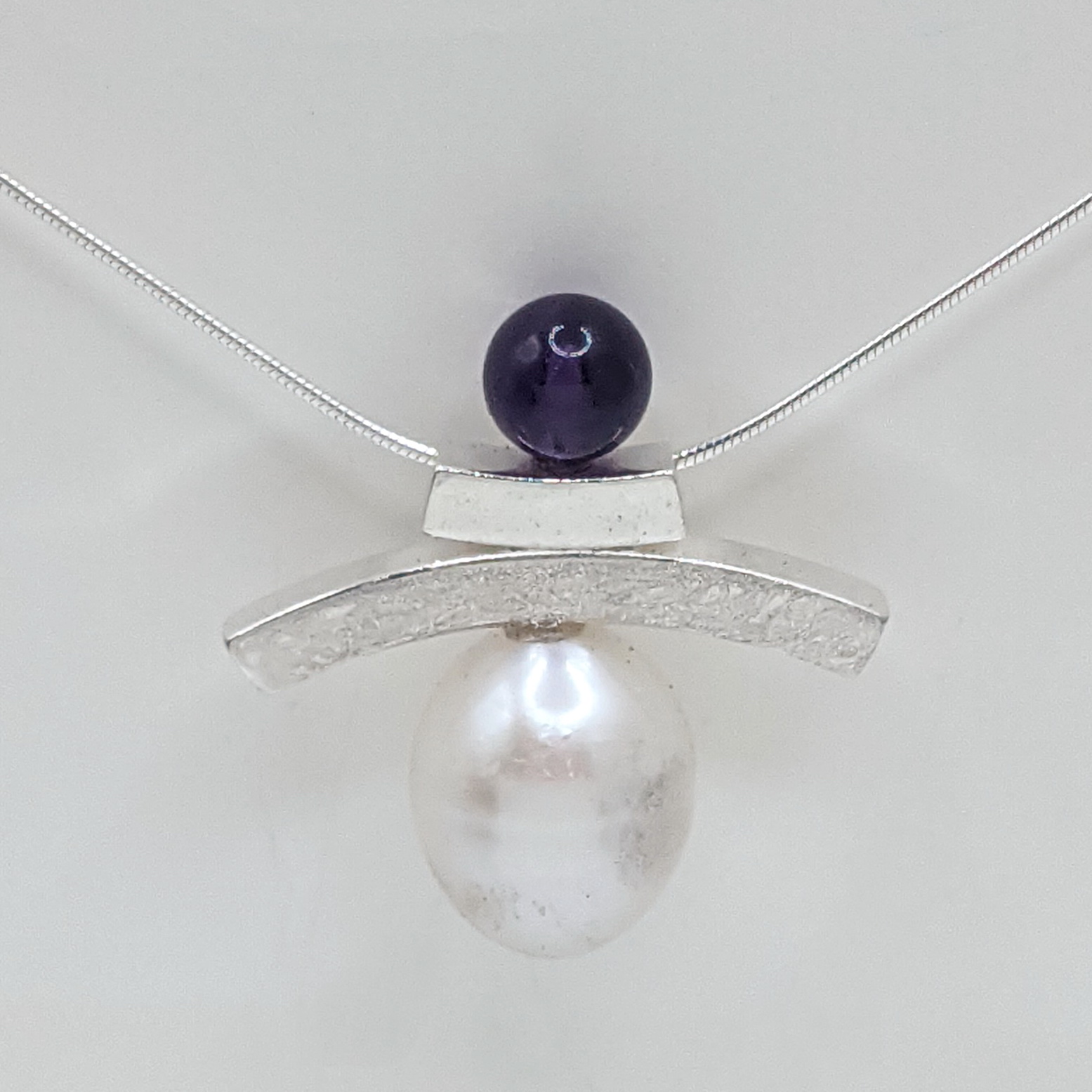 Balanced Inukshuk Necklace with Amethyst & Pearl by Chi’s Creations