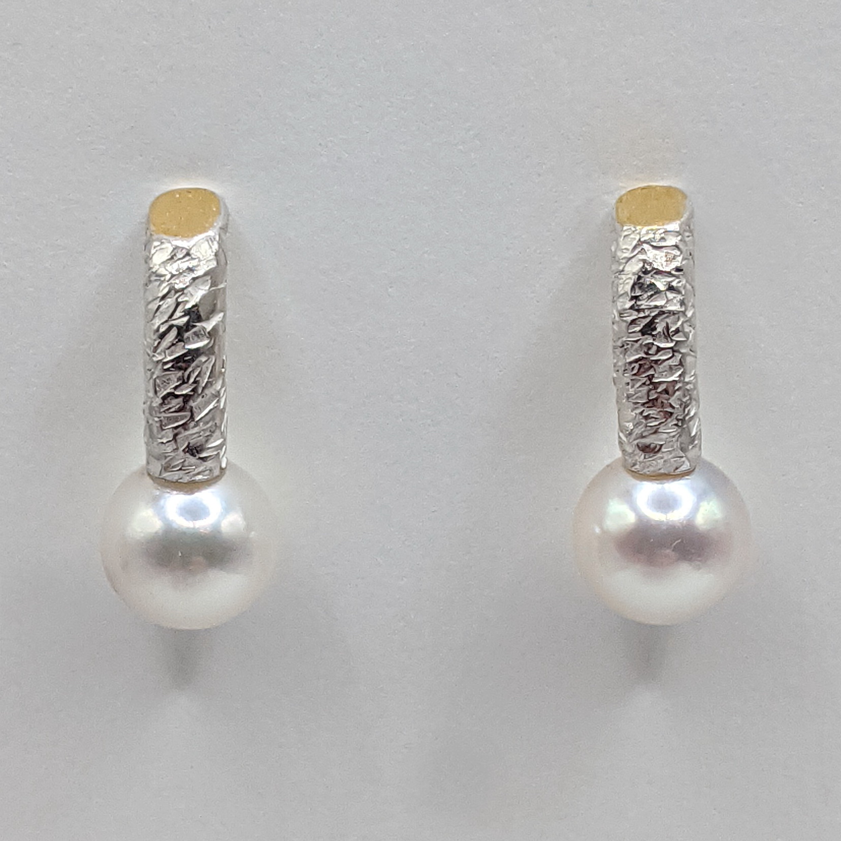 Sterling Silver, KeumBoo (pure gold, fused), Japanese Cultured Akoya Saltwater Pearls (9mm diameter)