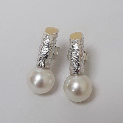Sterling Silver, Keum-Boo (pure gold, fused), Japanese Cultured Saltwater Pearls (8mm)