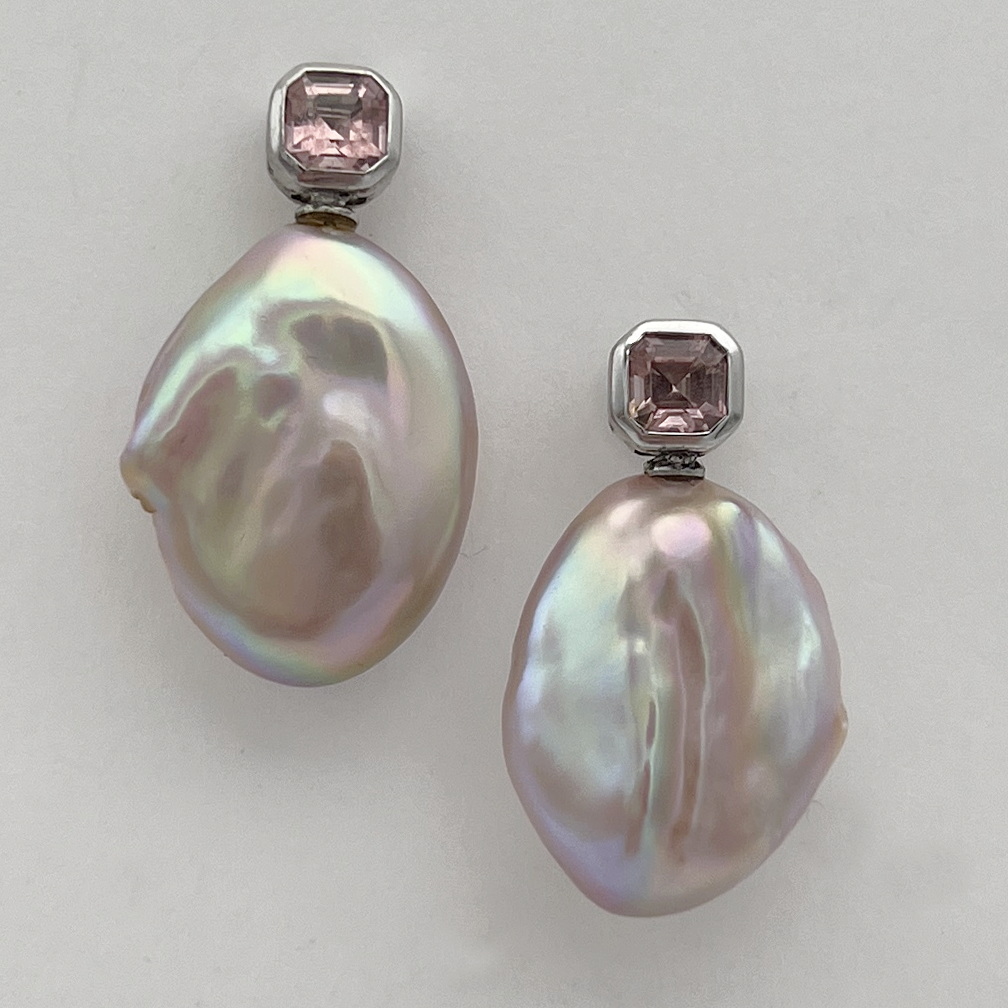 Baroque Pearl and Pink Tourmaline Earrings by Val Nunns