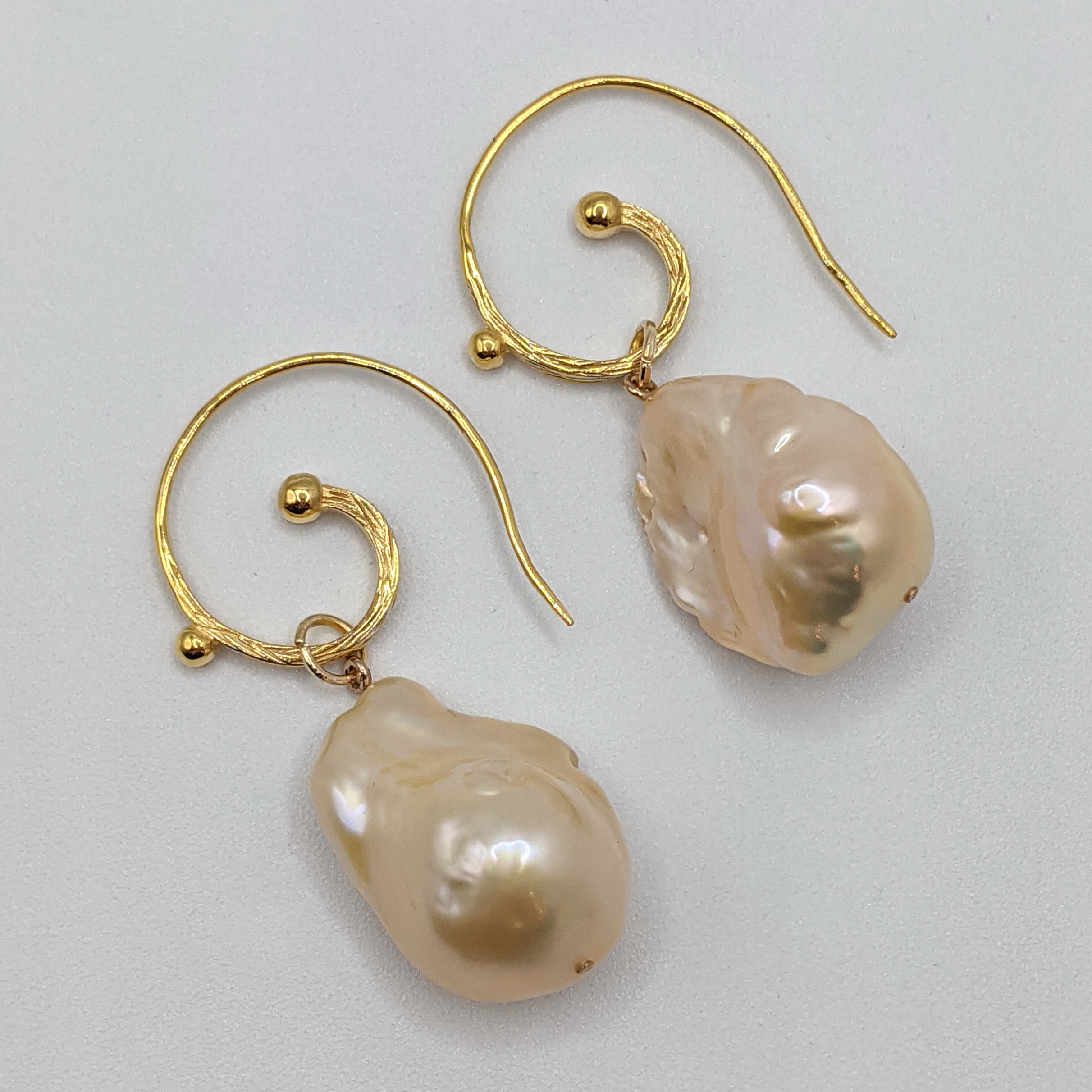 Baroque Pearl Earrings with Curly Gold-Plated Wires by Val Nunns