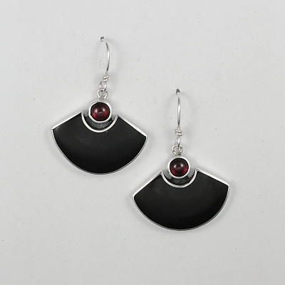 Black Jade & Garnet Earrings by Brenda Roy