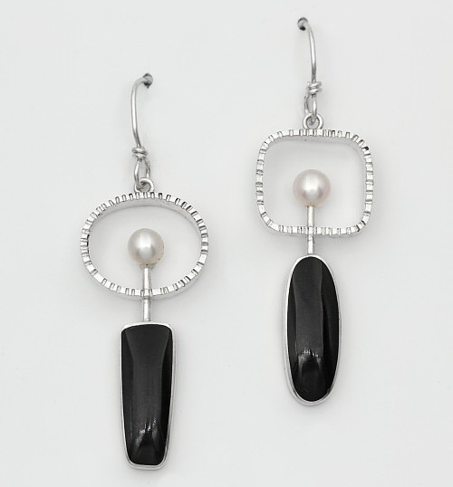 Pinolith, Black Jade & Rainbow Moonstone Earrings by Brenda Roy