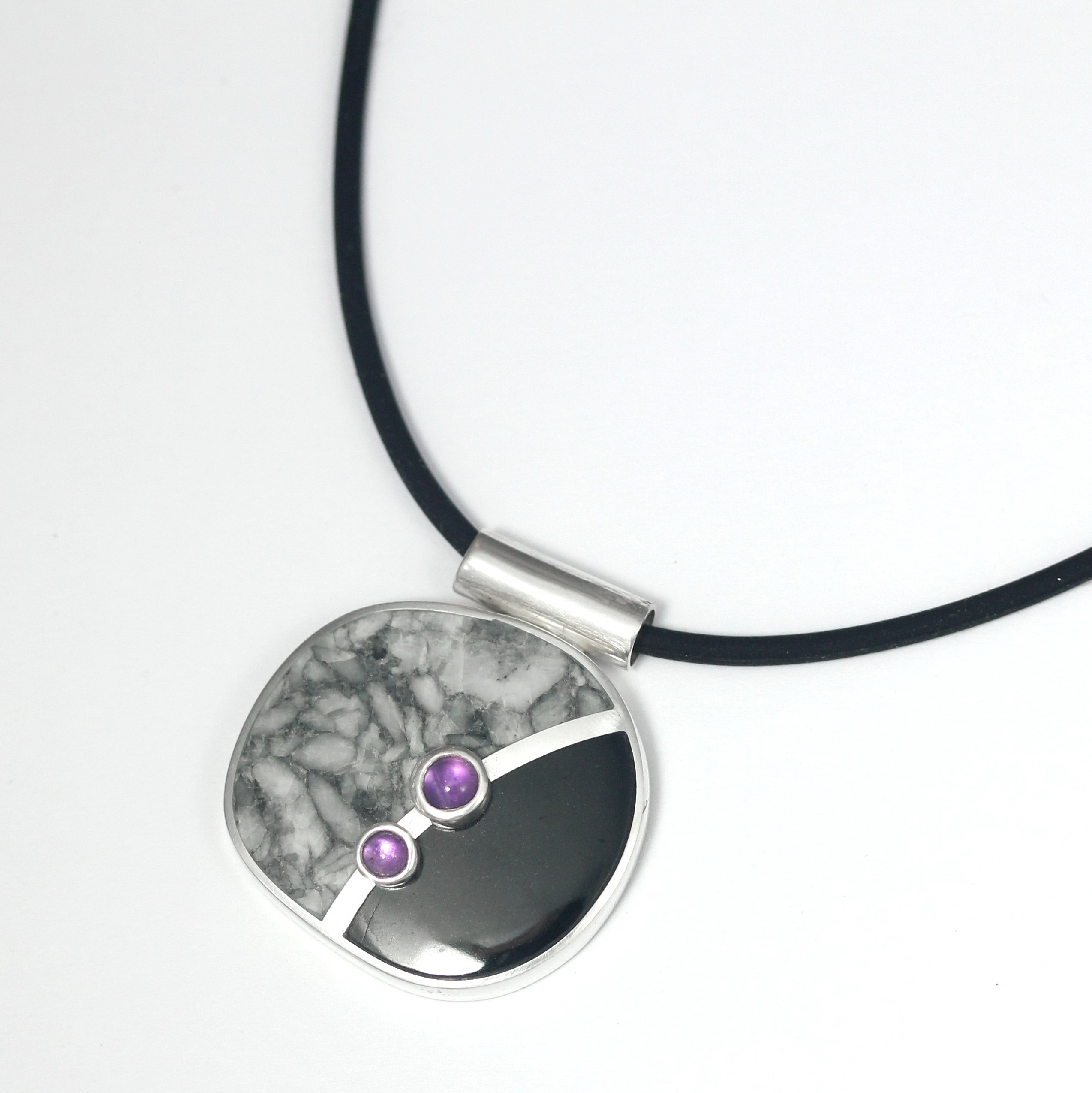 Black Jade, Pinolith & Amethyst Pendant by Brenda Roy