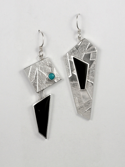 Black Jade & Turquoise Earrings by Brenda Roy