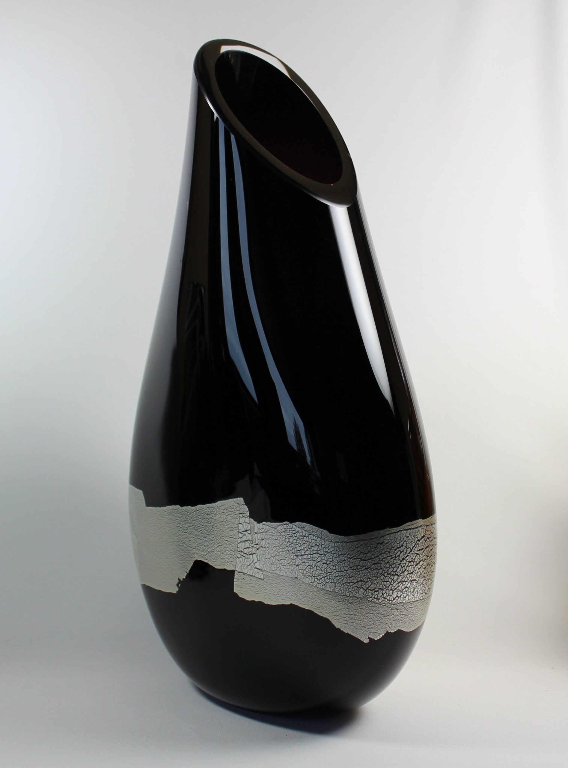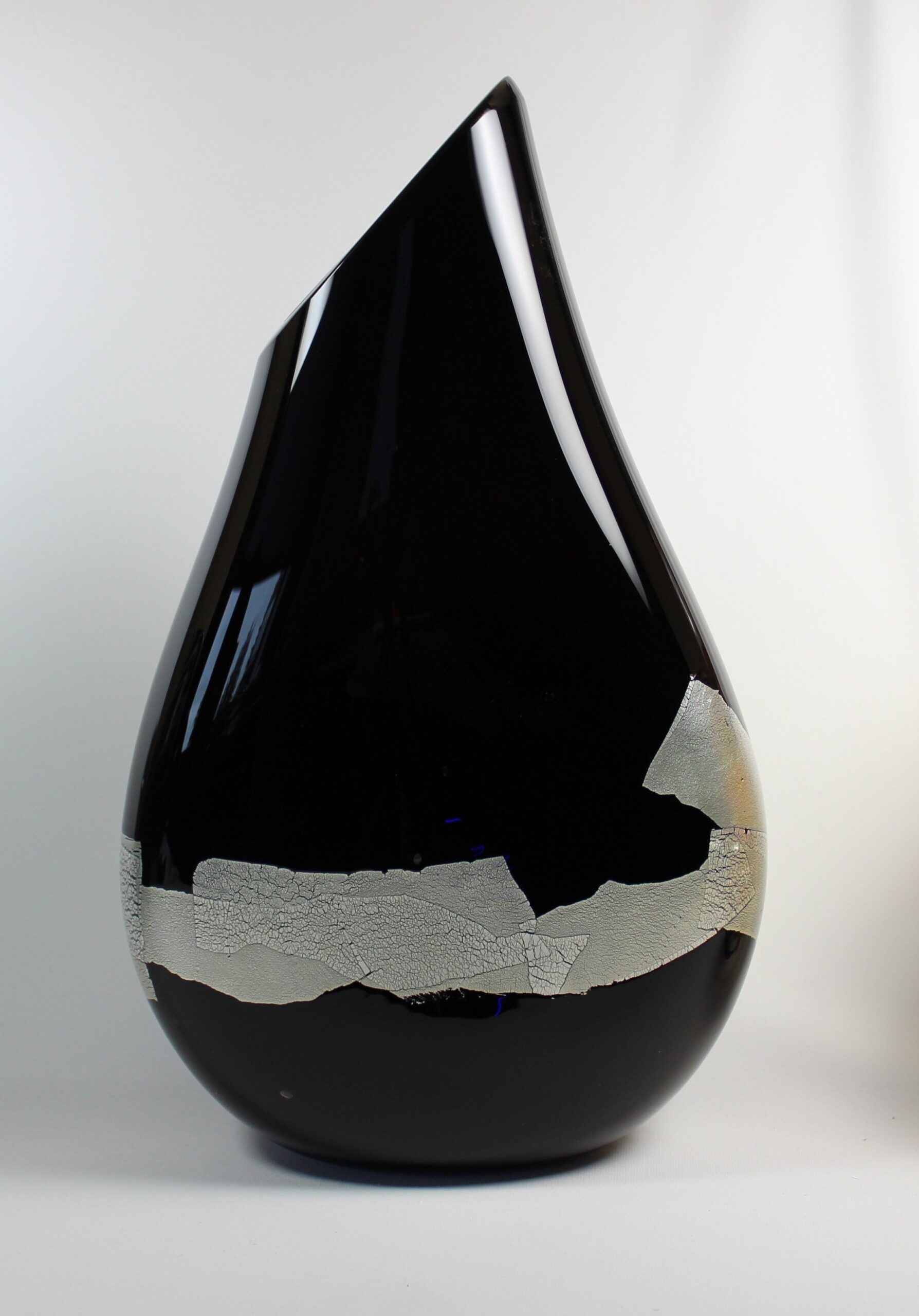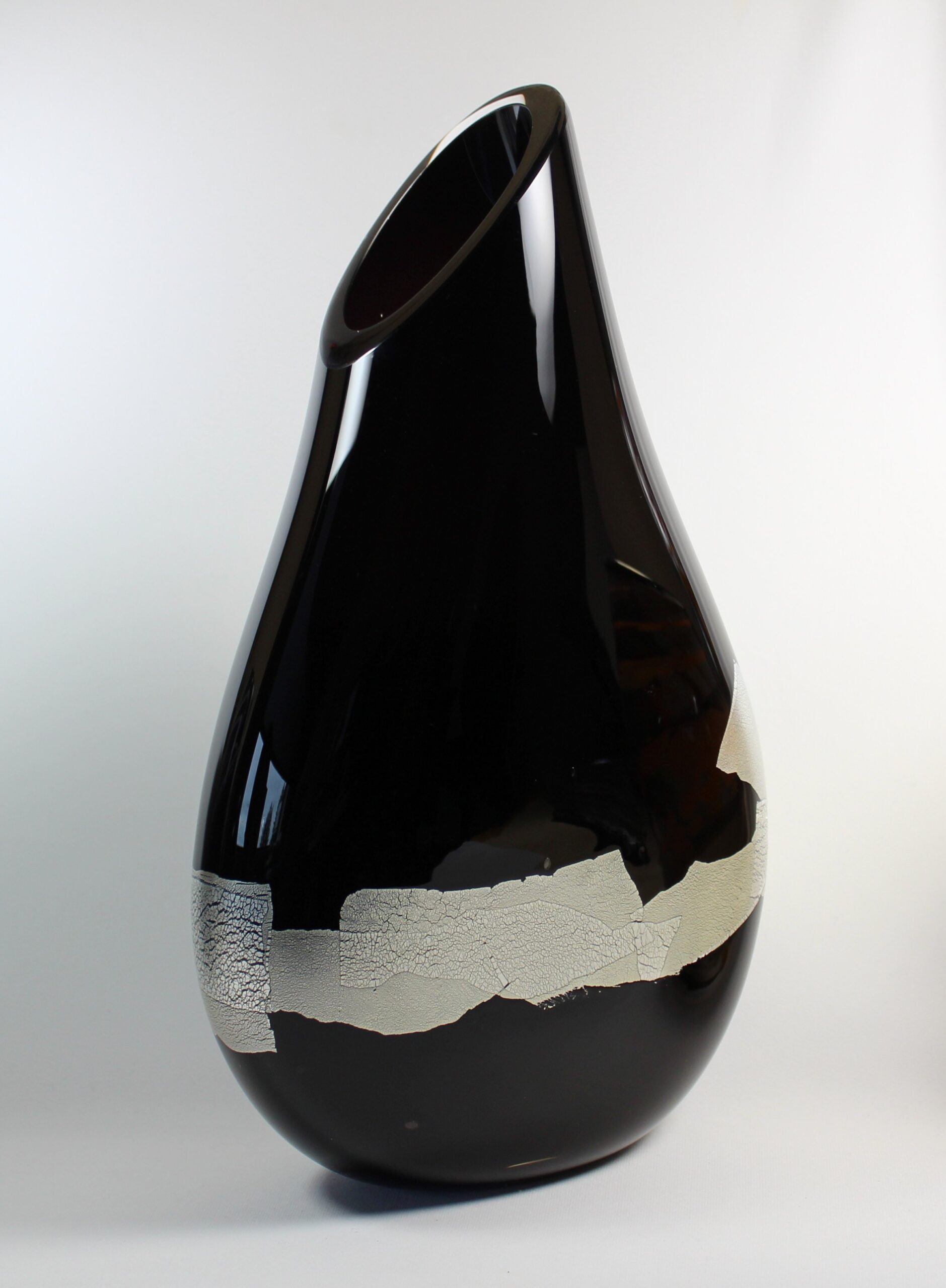 “This piece combines deep black with overlapping silver leaf that has stretched and folded, creating its own unique design.” – Guy Hollington