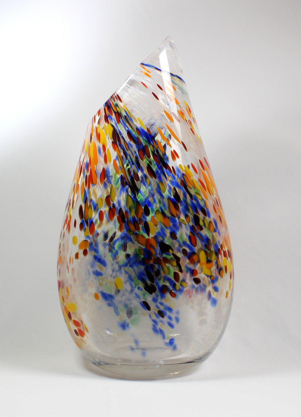 “This piece is a frozen whirlwind of confetti caught in mid-celebration; a joyful explosion suspended forever in glass.” – Guy Hollington
