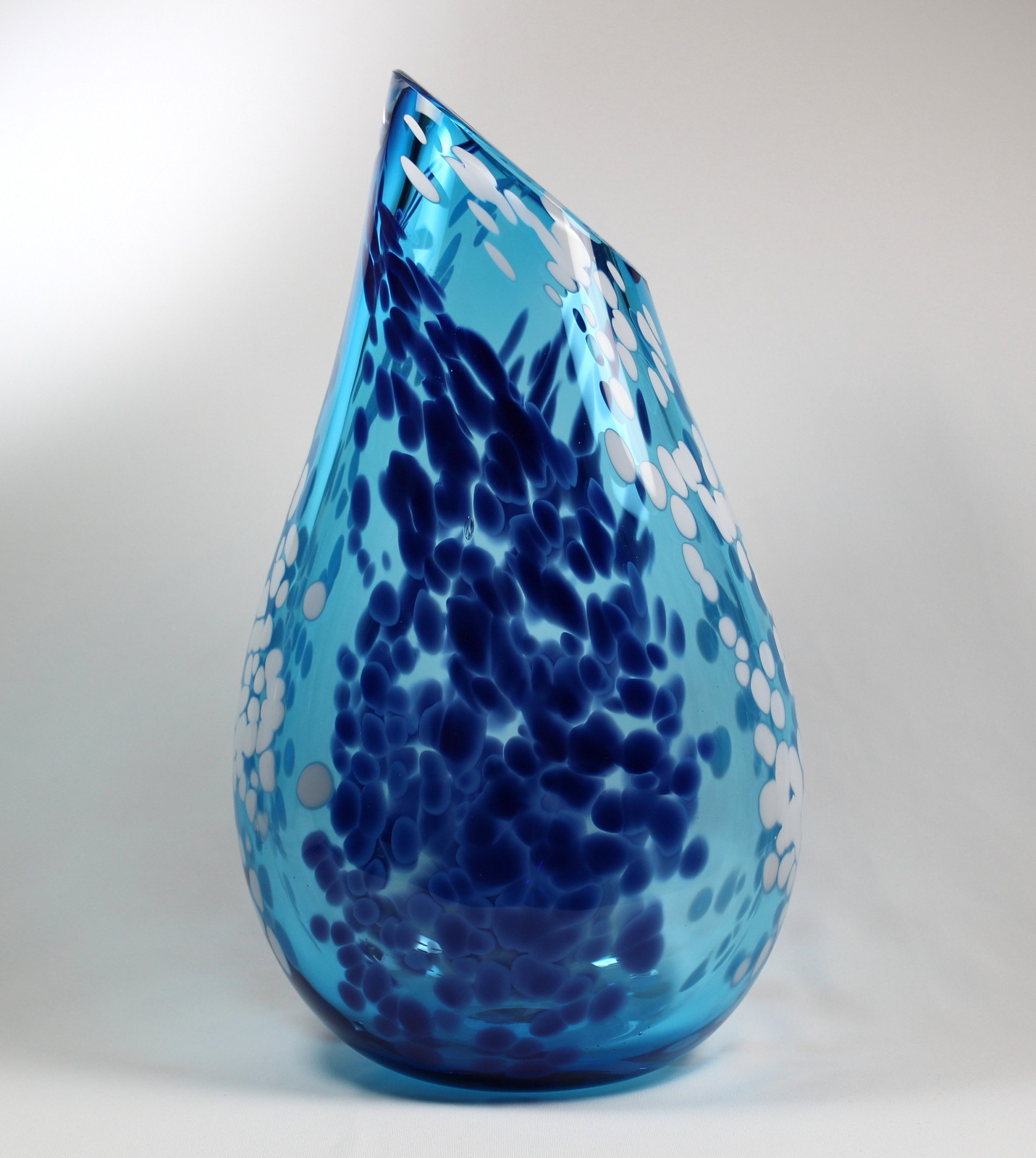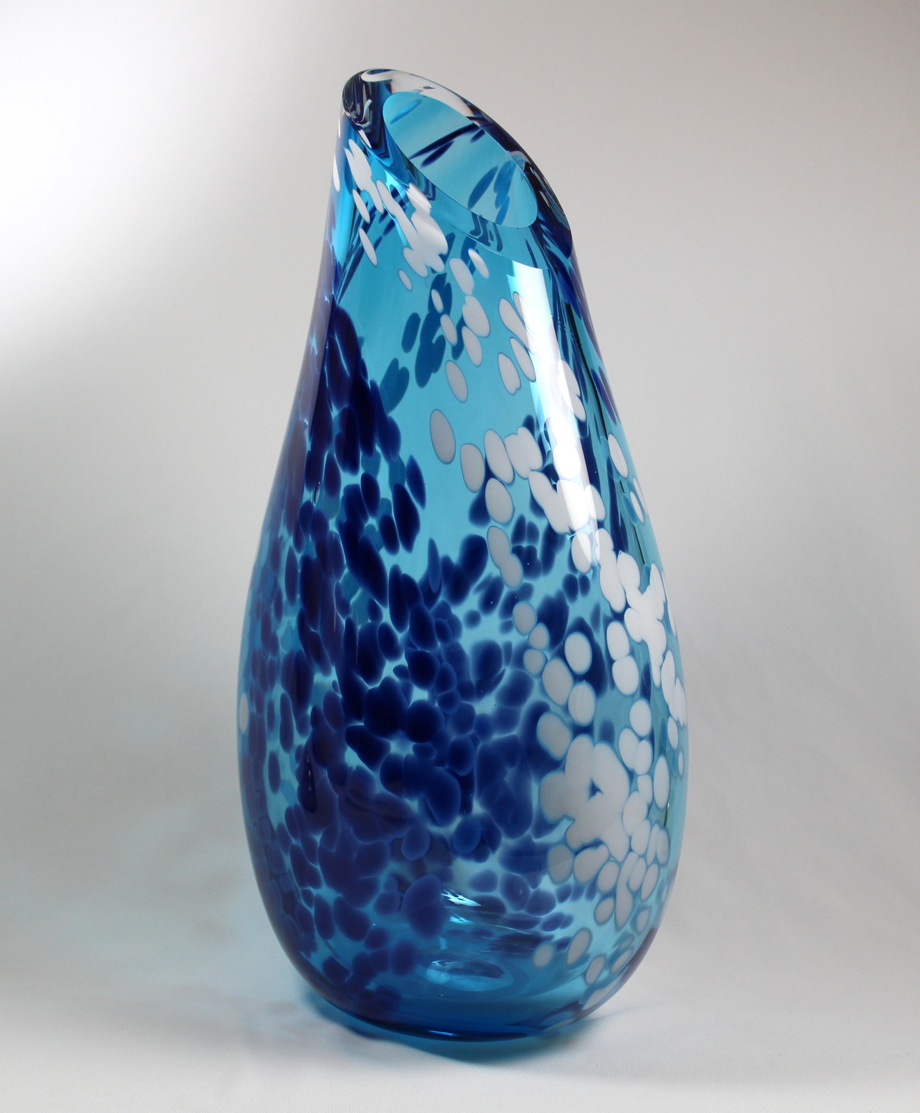 “This piece is inspired by the crashing surf of the west coast. It is best displayed where sunlight can play through the layered colours in this glass.” – Guy Hollington