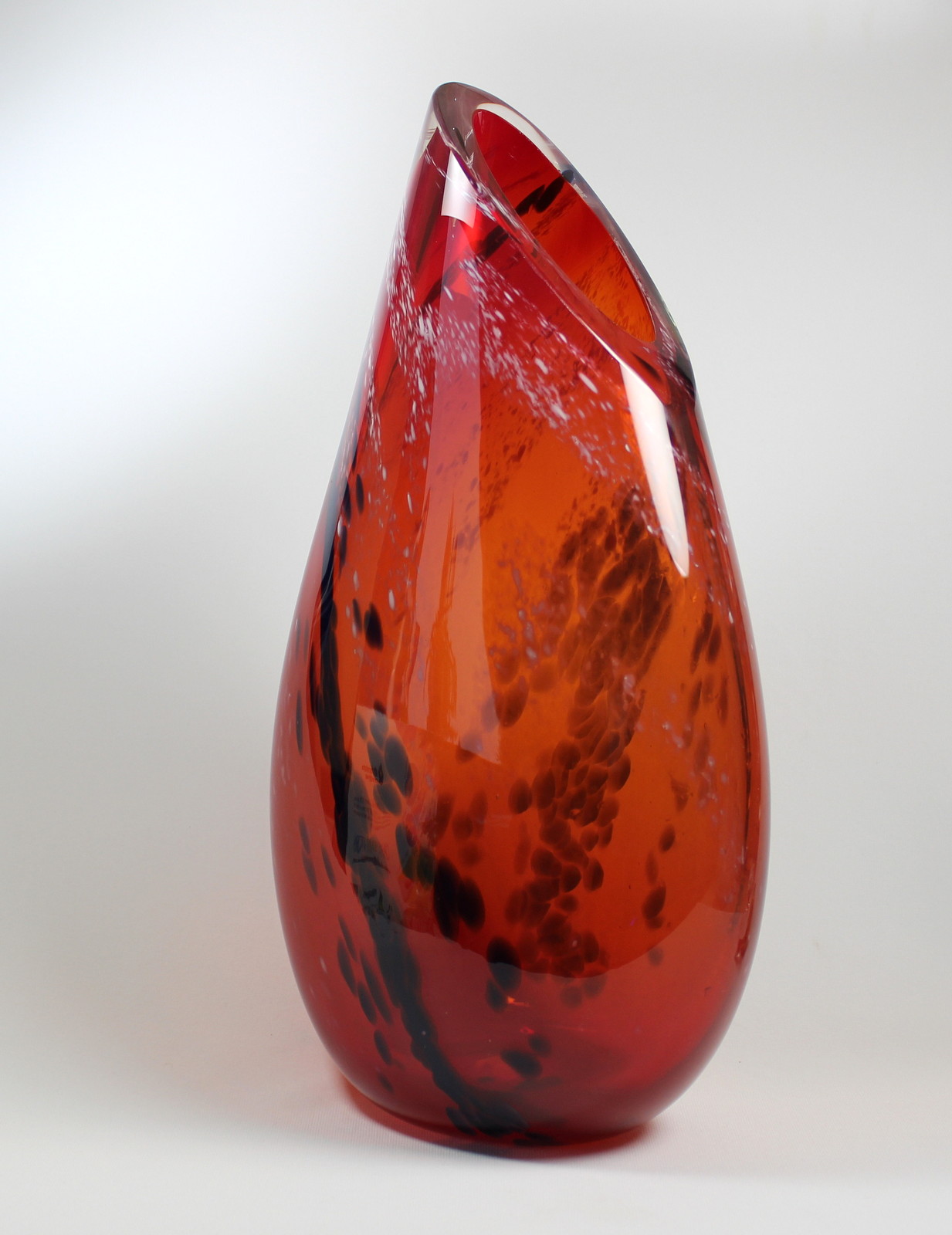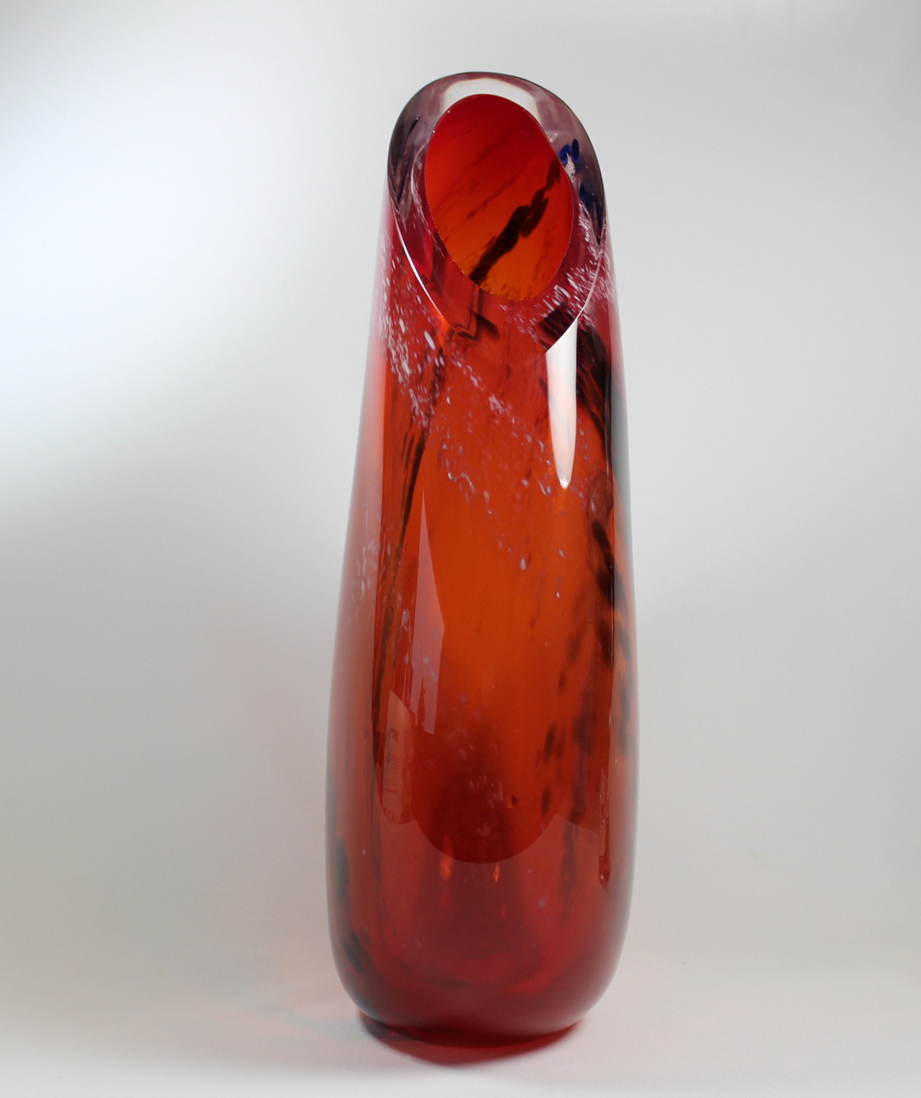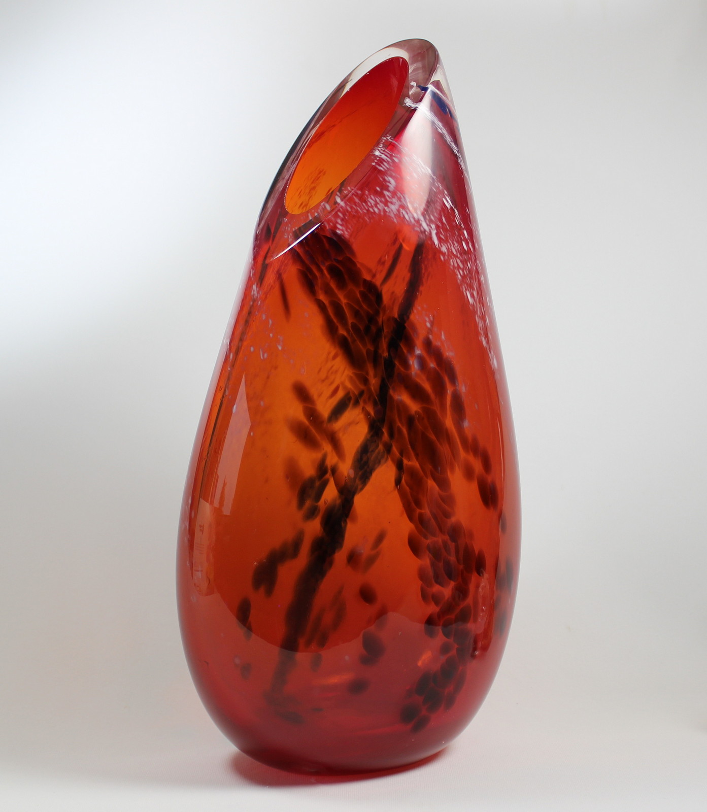 “All blown glass is bright orange when it is being worked hot. This piece is inspired by the warmth of that fire and evokes the natural convection that happens within a glowing hearth.” – Guy Hollington