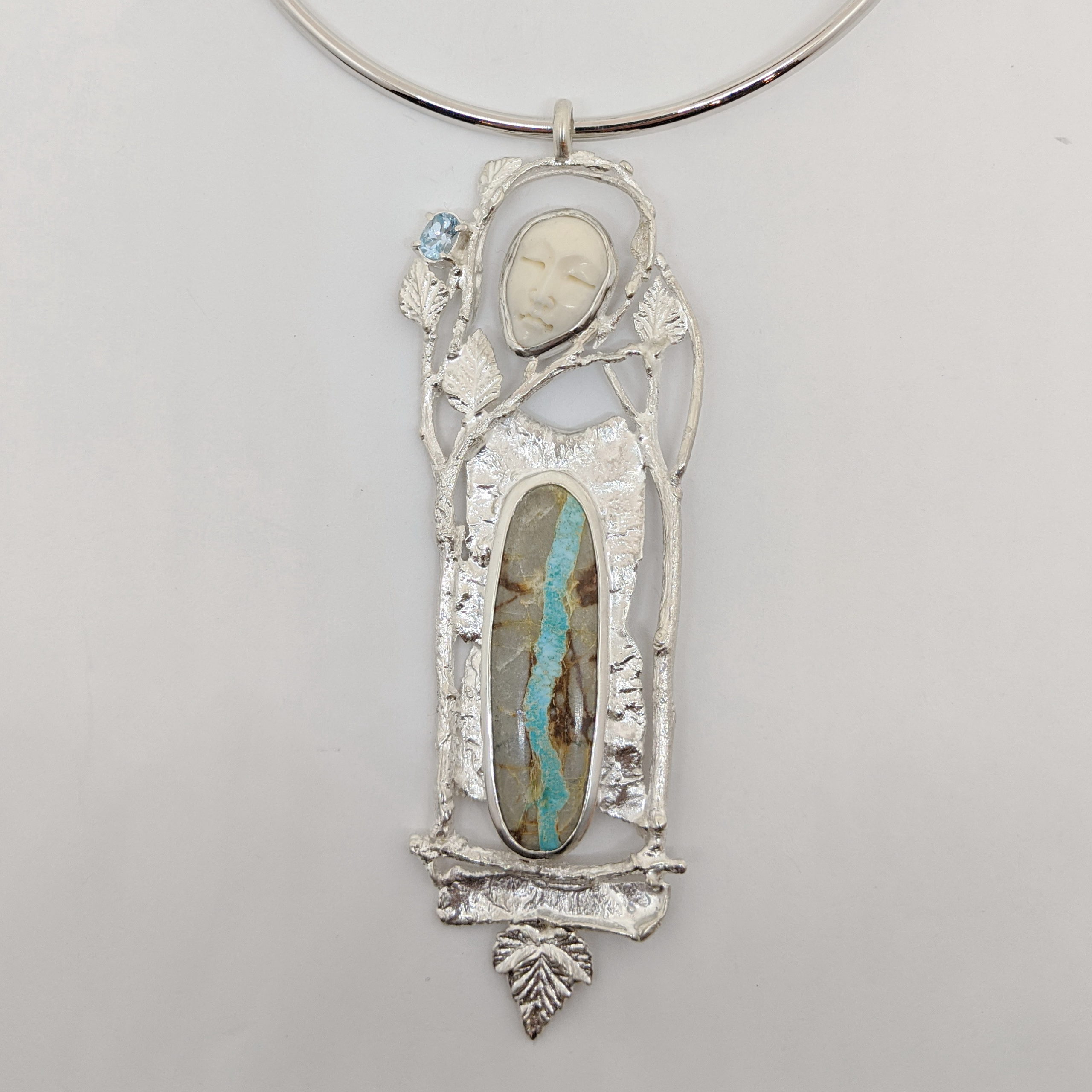 Sterling Silver, Blue Topaz, Turquoise, Carved Bone