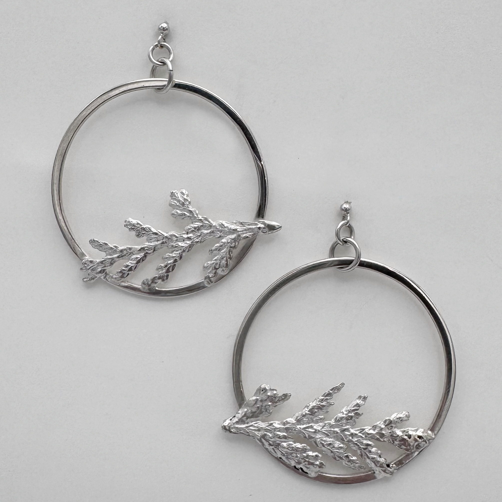 Sterling silver; cast from Galiano-collected cedar (cast directly, not molded, so each section is unique)