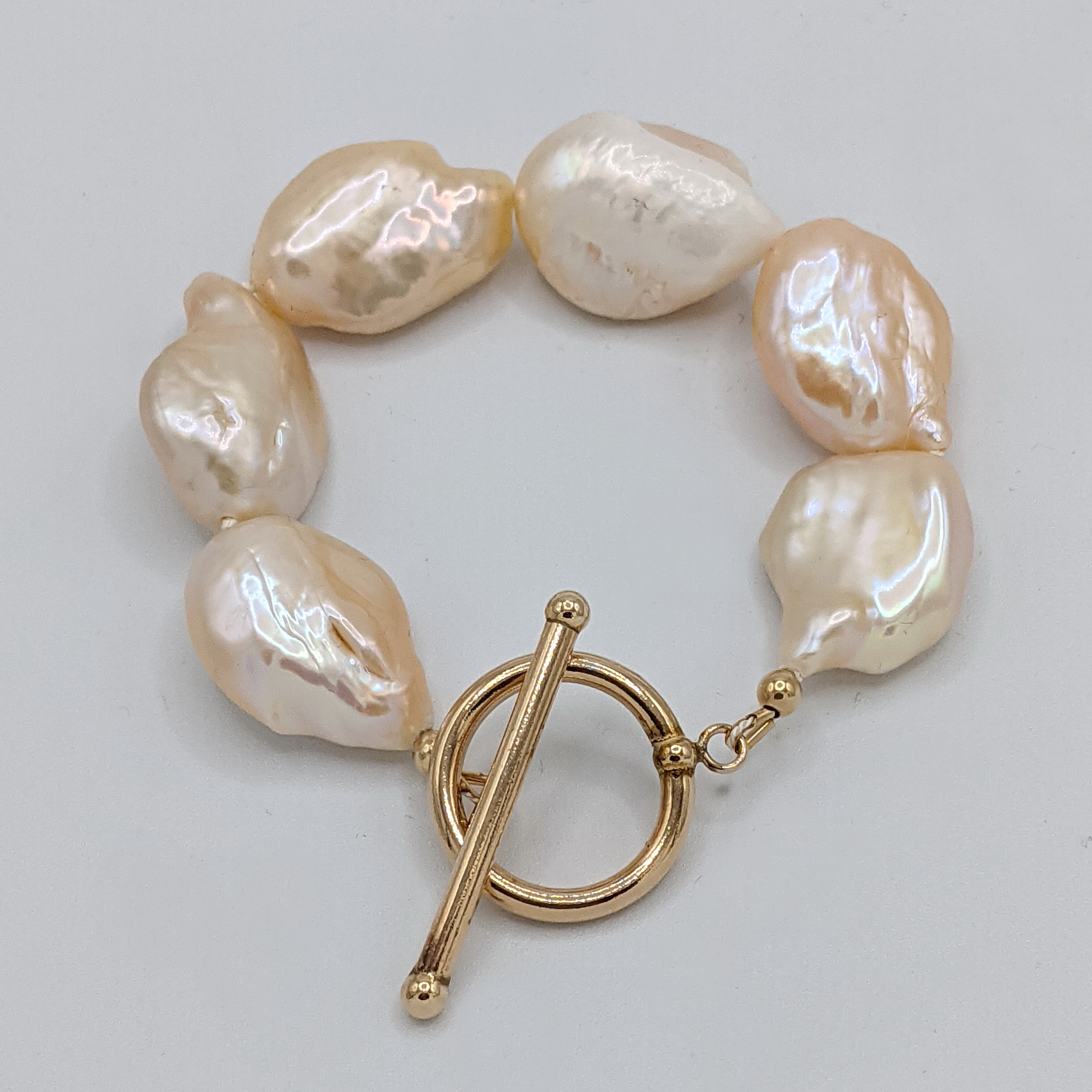 Cream Baroque Pearl Bracelet with Gold-Filled Toggle Clasp by Val Nunns