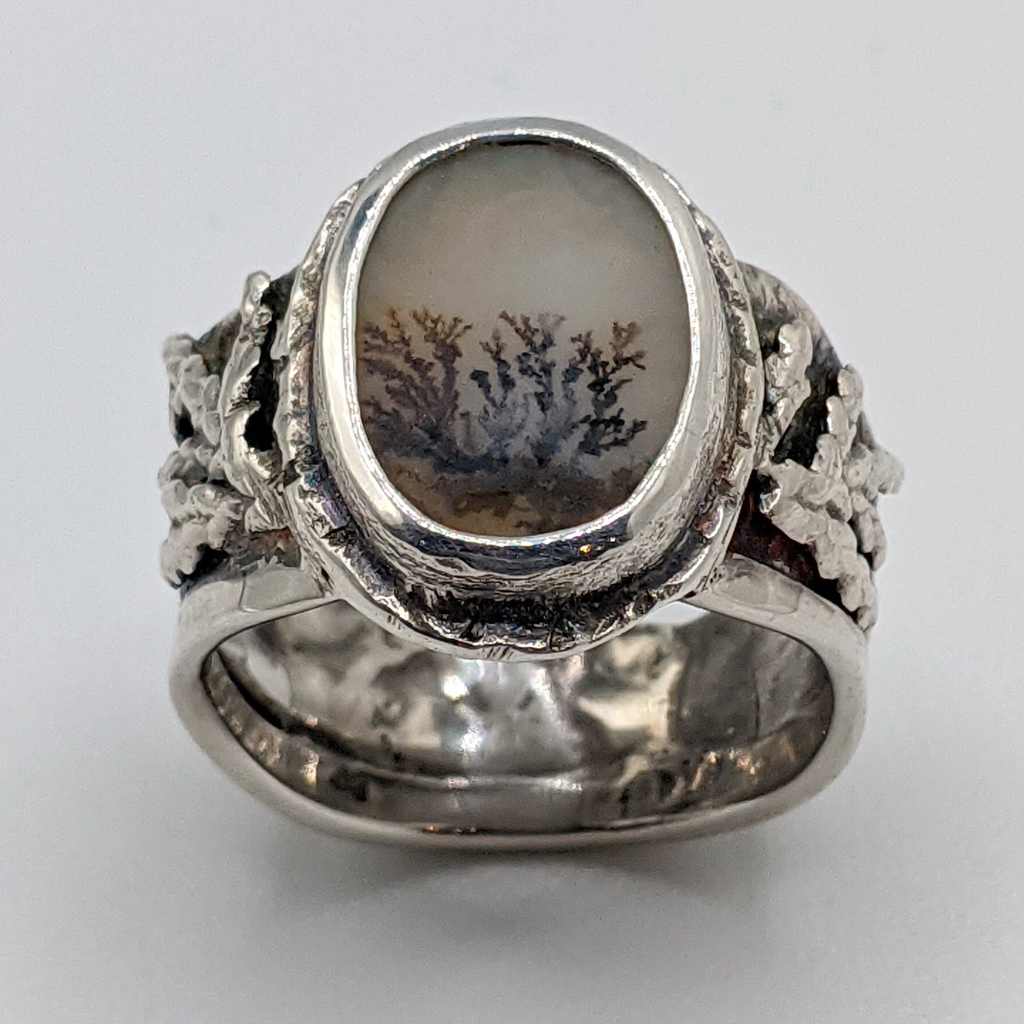 Sterling Silver, Fine Silver, Dendritic Agate, cast Cedar