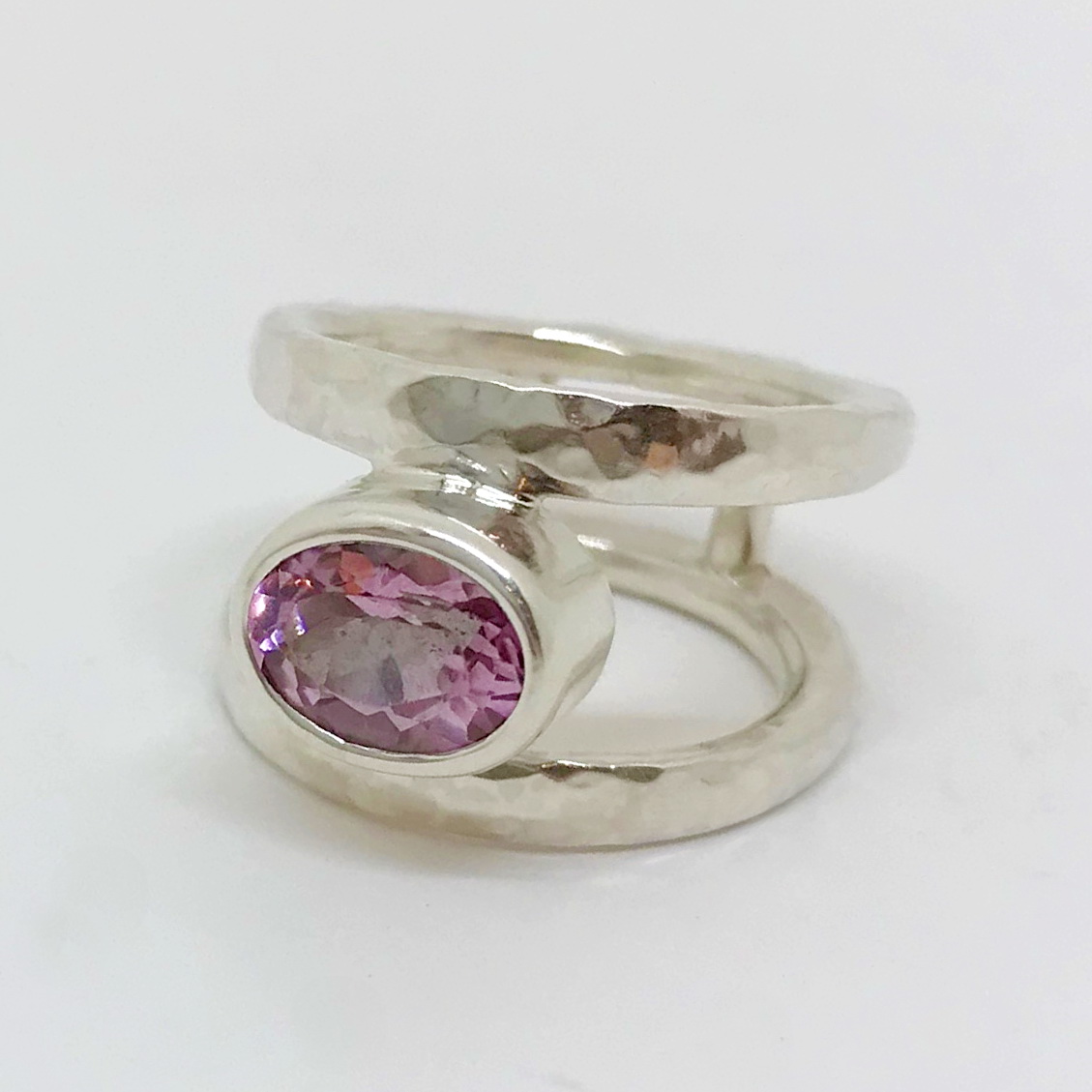 Double Band Ring with Pink Topaz by A & R Jewellery