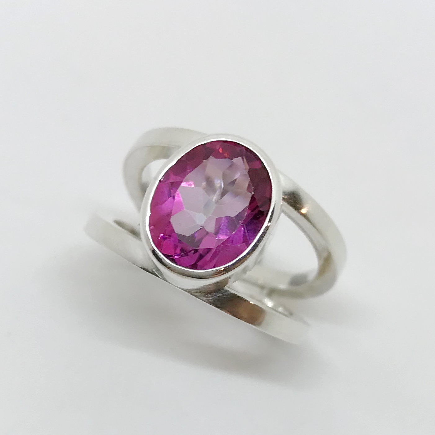 Double Band Ring with Pink Topaz by A & R Jewellery