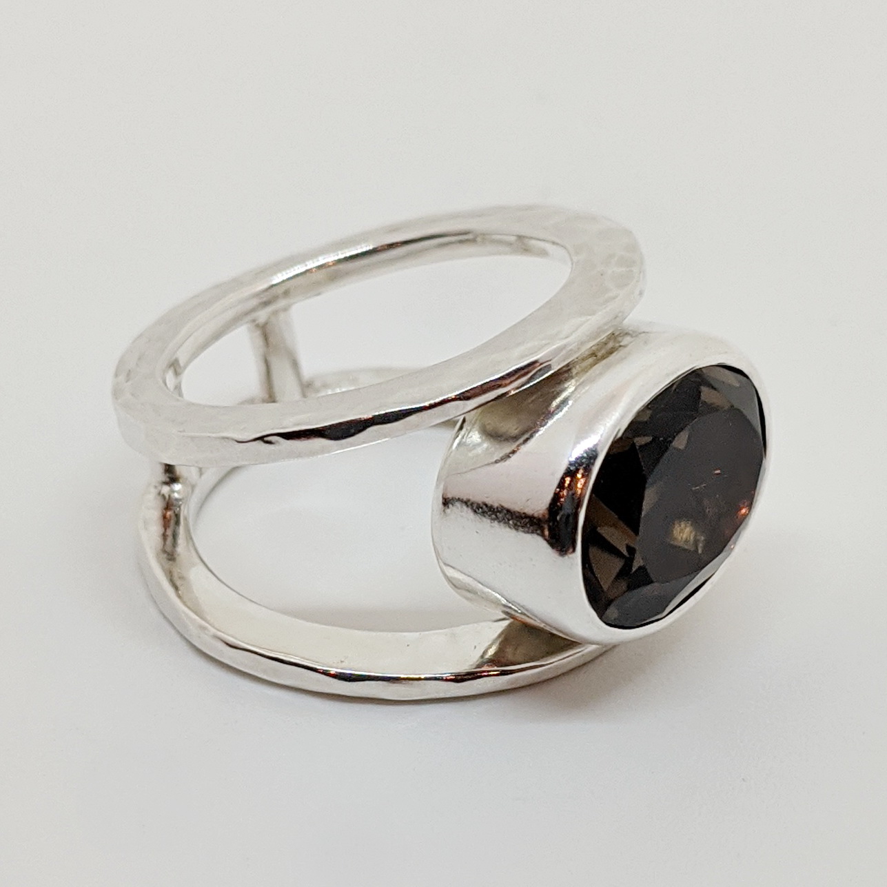 Double Round Ring with Smoky Quartz by A & R Jewellery