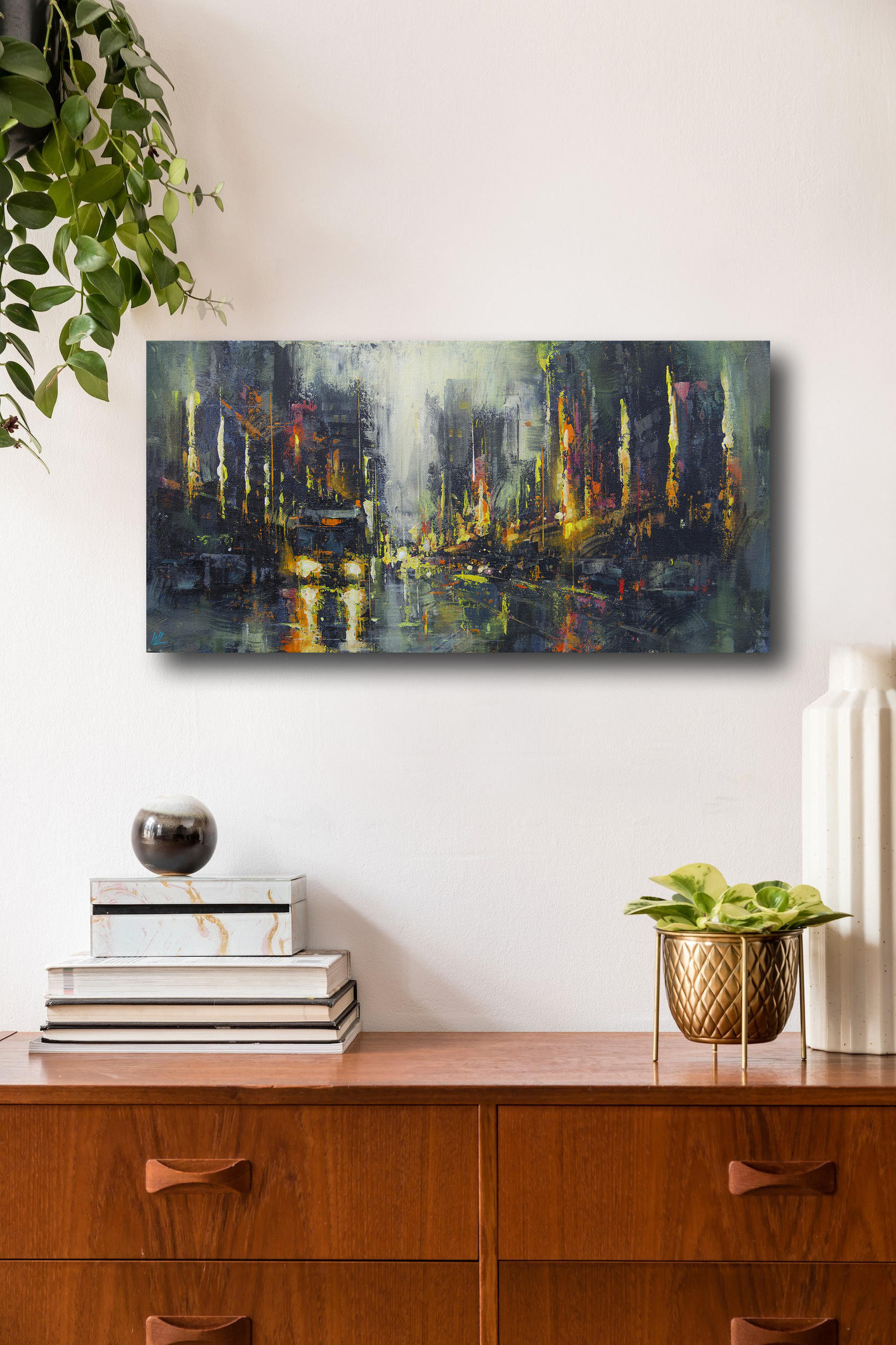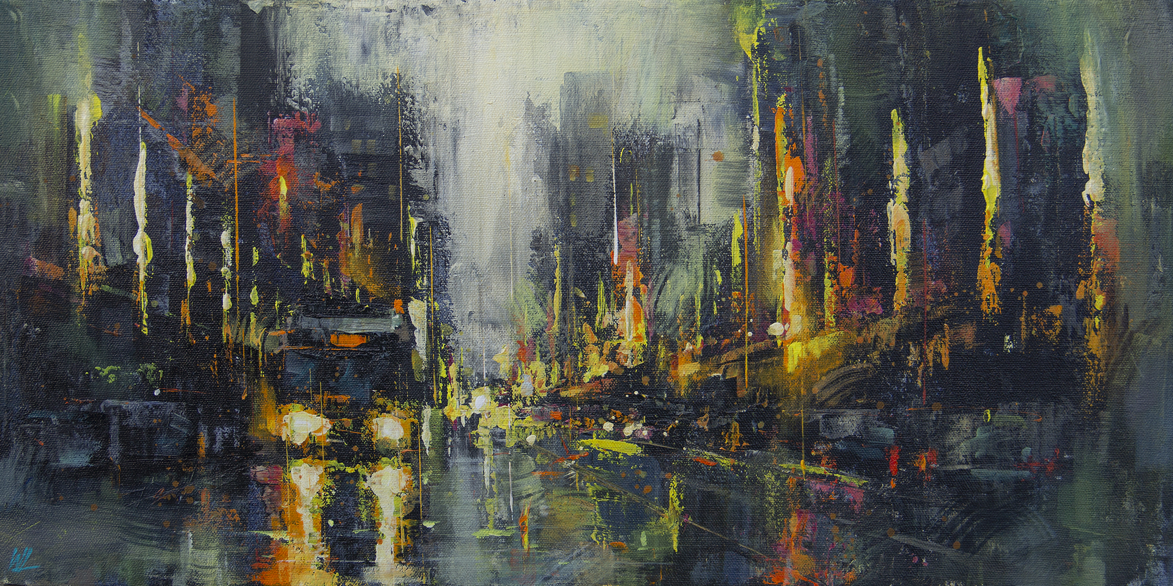 “When night falls, the lights on Granville Street come on as usual. Not the first, nor the last time I will paint this story-filled and long street. This particular view has always been one of my favourites.” – William Liao