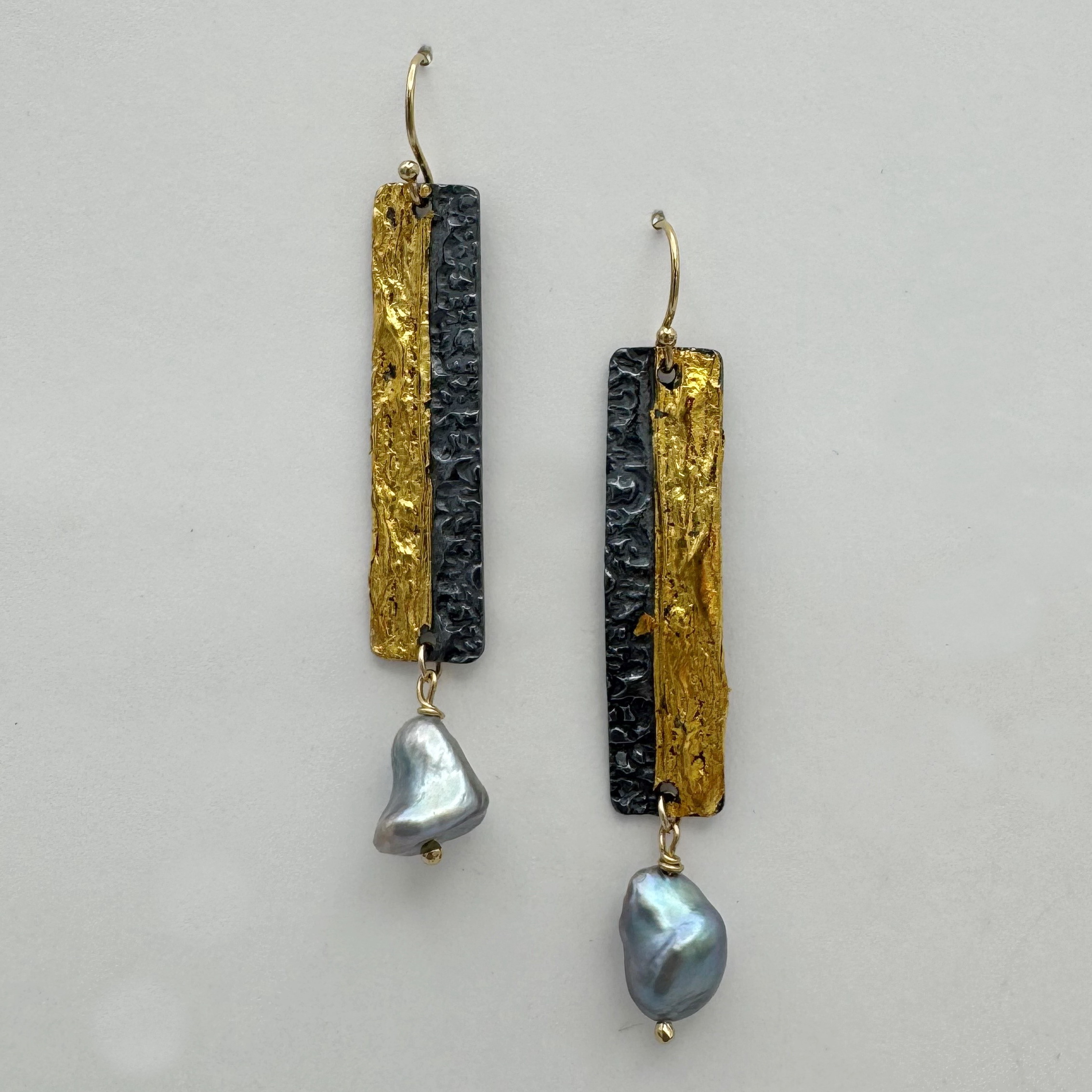 Cast Silver with KeumBoo, Tahitian Pearls, Gold-Fill wires