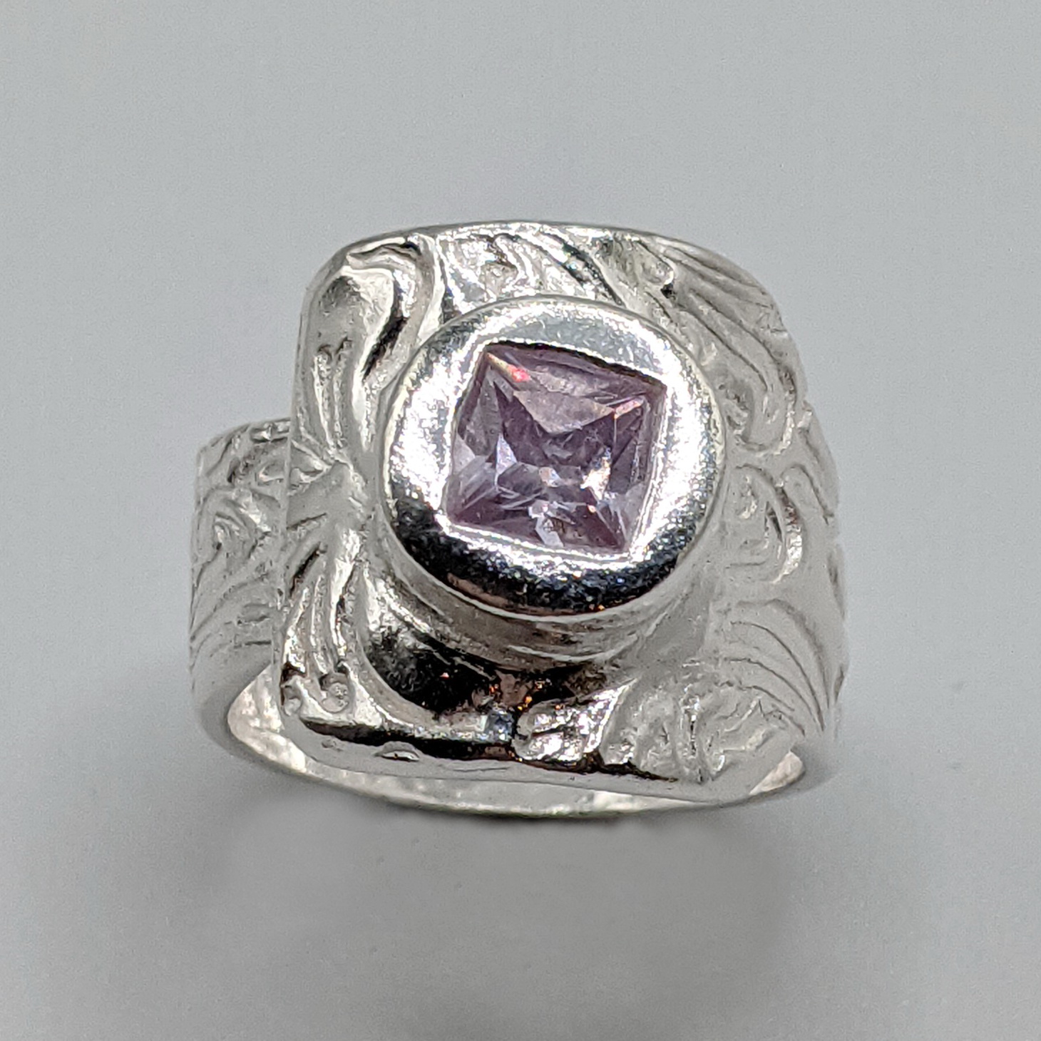 Fine Silver Ring with Lilac Square Cubic Zirconia by Veronica Stewart