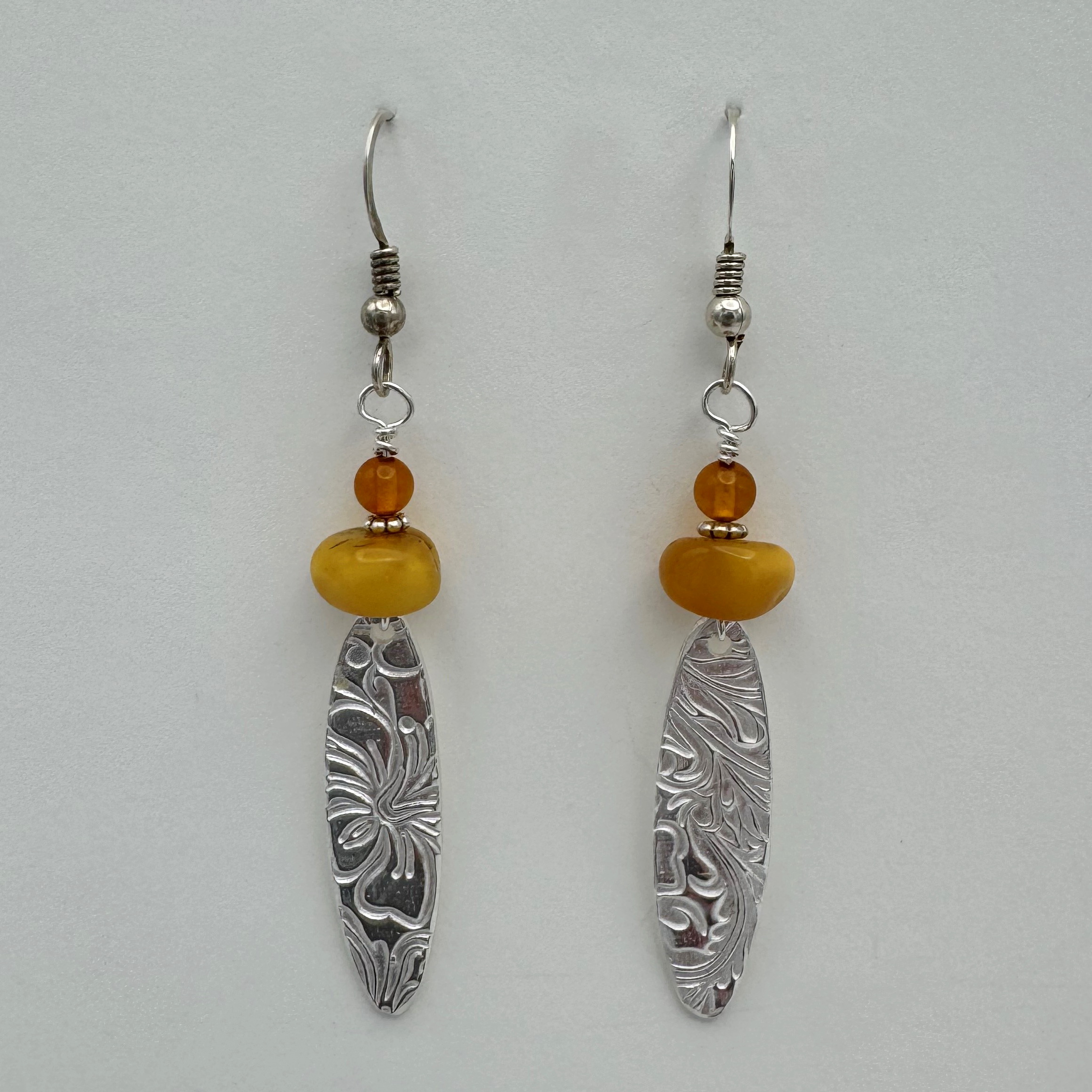 Fine Silver Textured Ovals Earrings with Amber by Veronica Stewart quantity