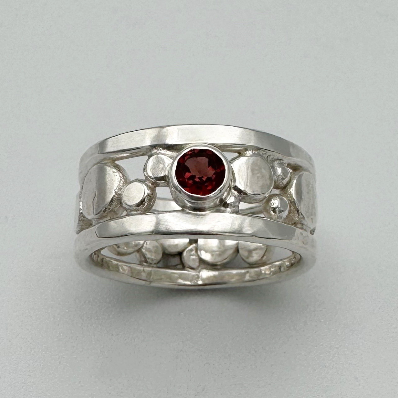 Flat Granules Ring with Garnet by A & R Jewellery