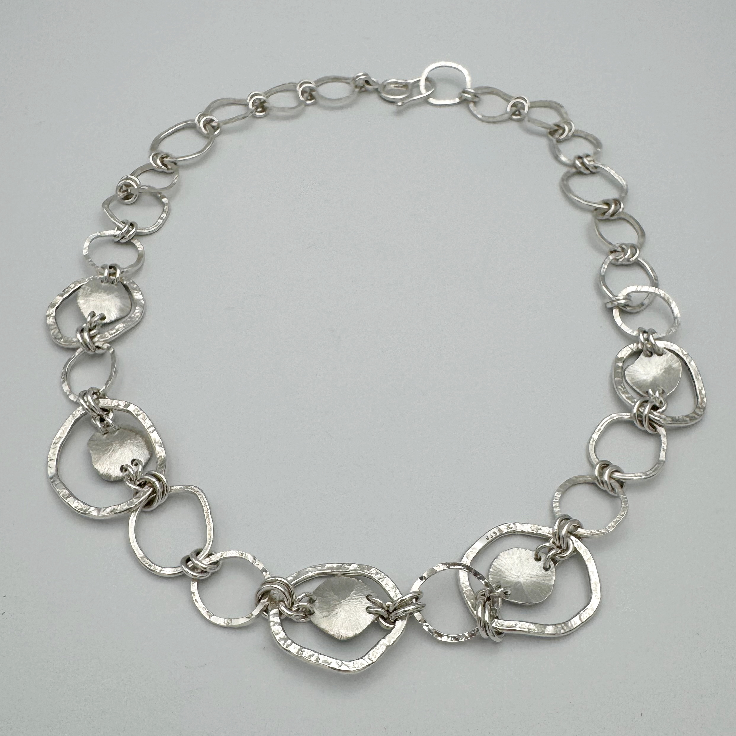 Free Form Circle Argentium Silver Necklace with Sun Accents by A & R Jewellery