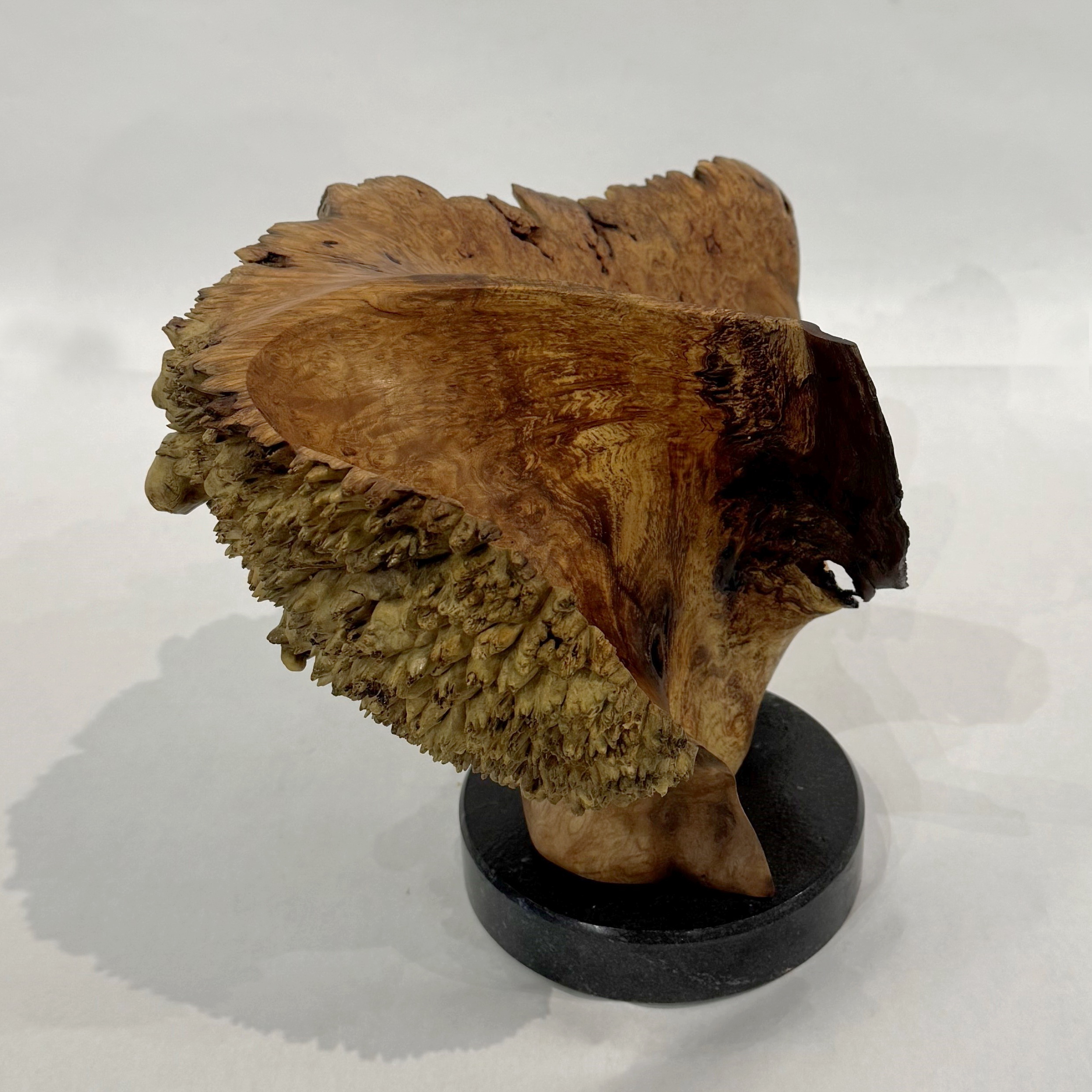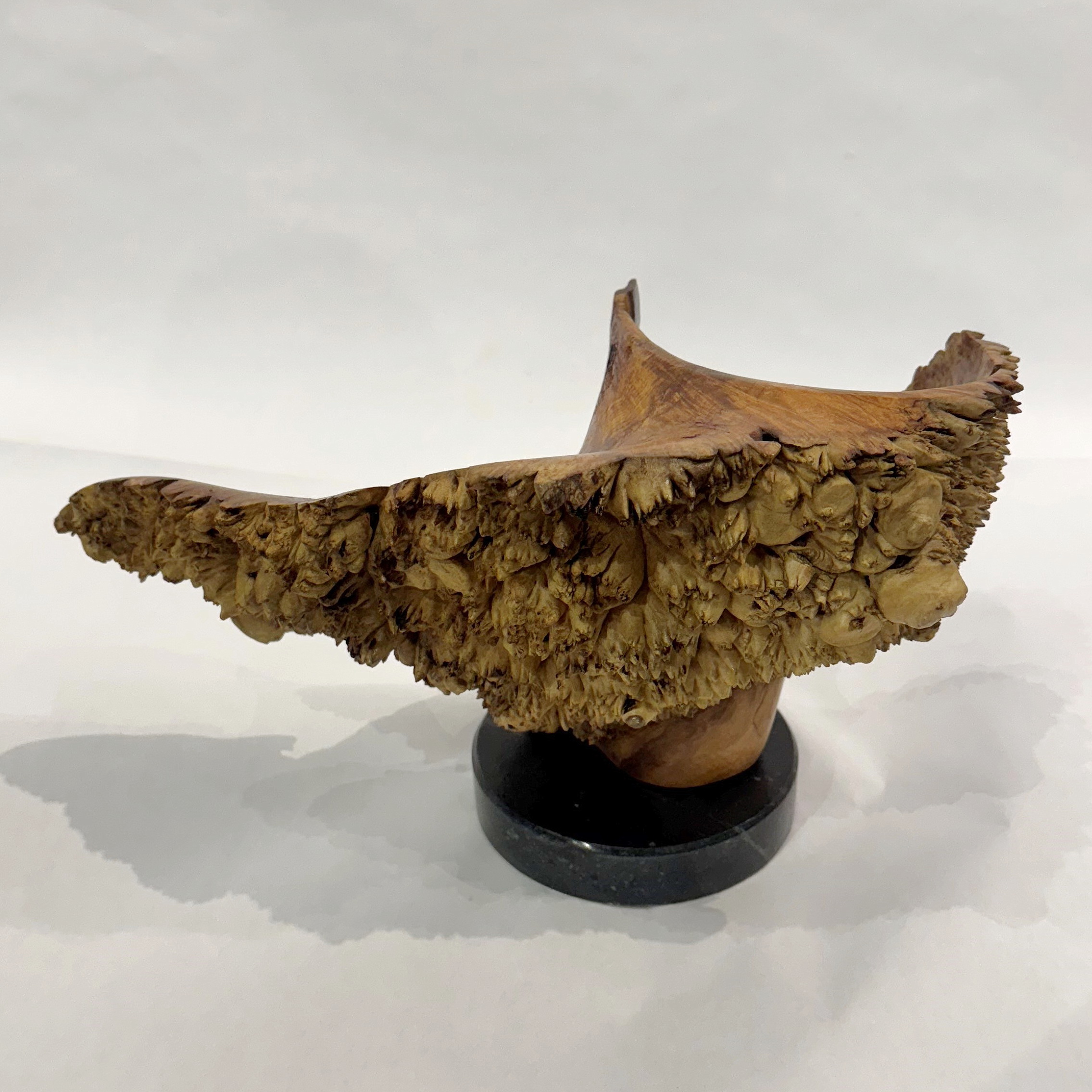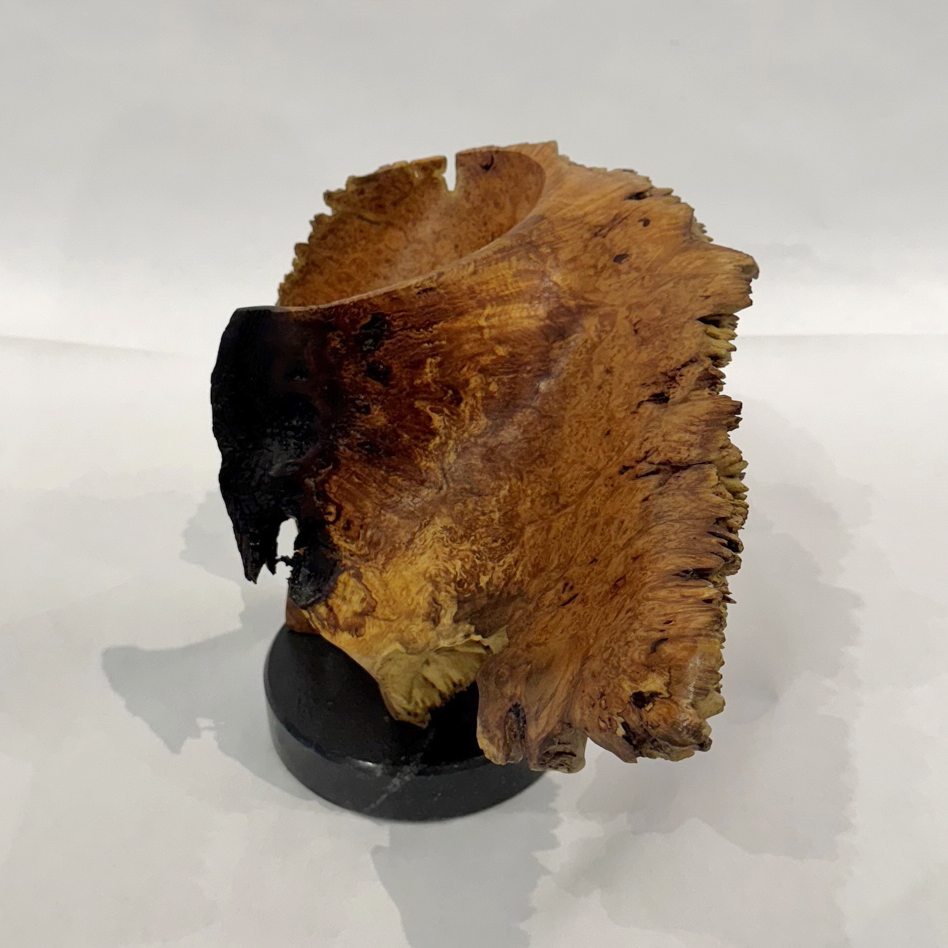 The above, to my eye, is what I see in this burl. It is a galaxy compressed into an ornament, if you will, demonstrating how the magnificence of outer space can be demonstrated and represented by the simplicity and beauty of the nature that is readily available.” – Bruce Edmundson