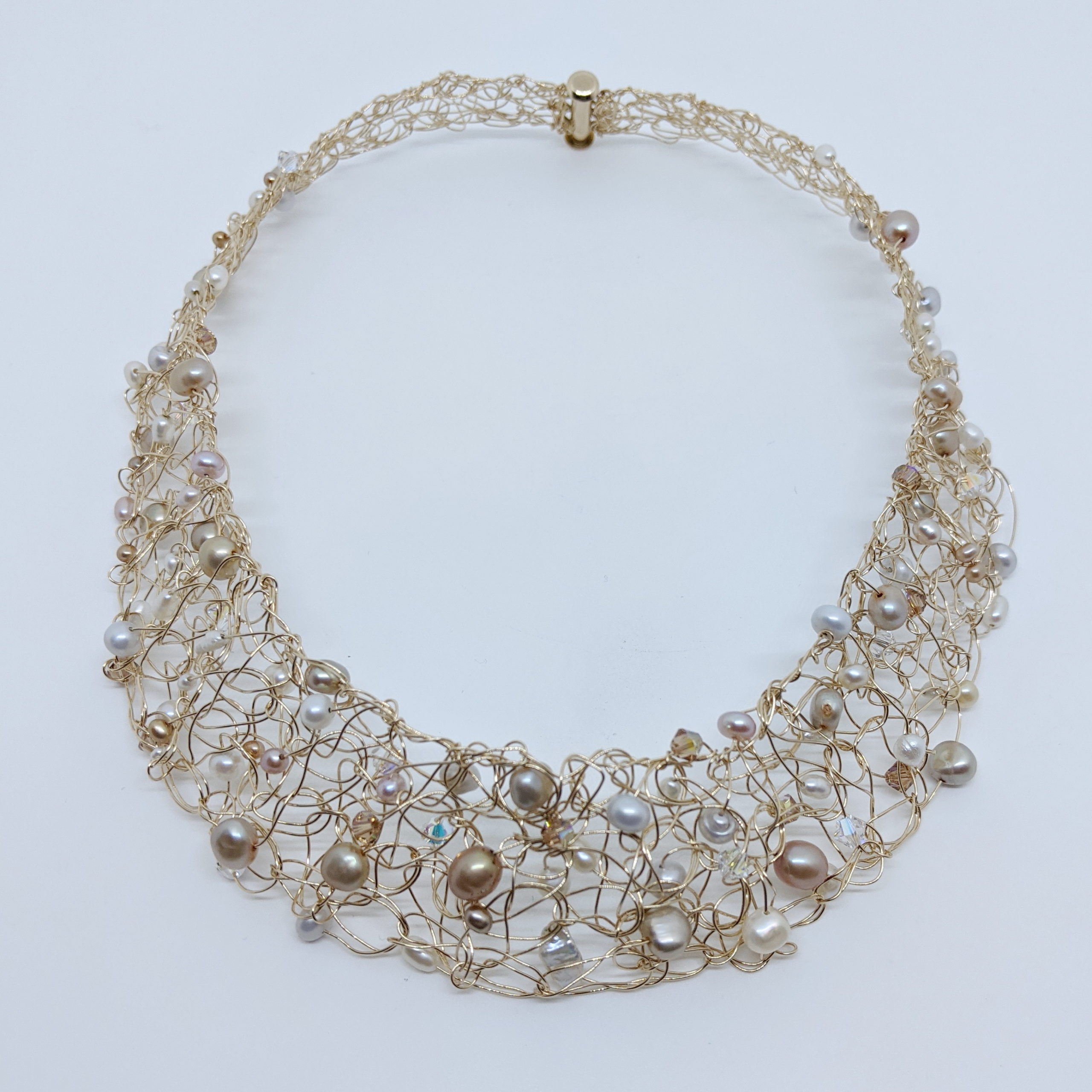 Gold-Filled Crochet Collar with Freshwater Pearls and Swarovski Crystals by Veronica Stewart