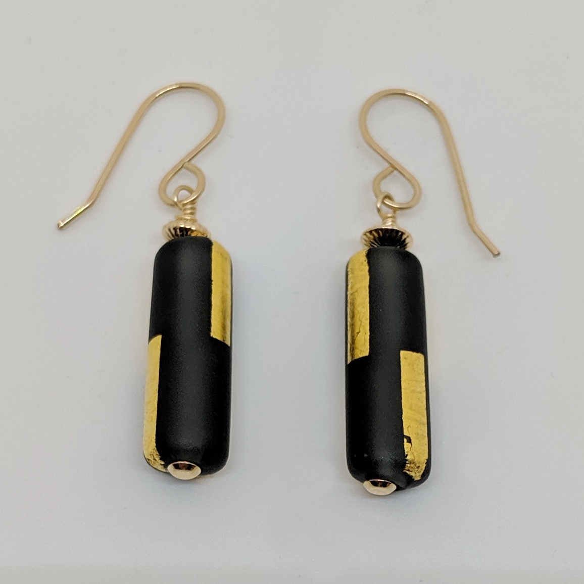 Glass Lampworked Beads, 24K Gold Leaf accent, Gold-Fill Hooks