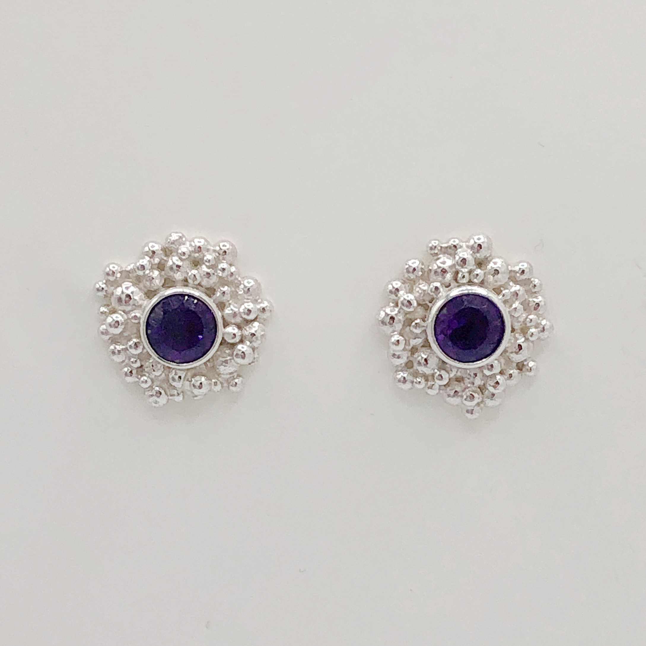 Granule Stud Earrings with Amethyst by A & R Jewellery