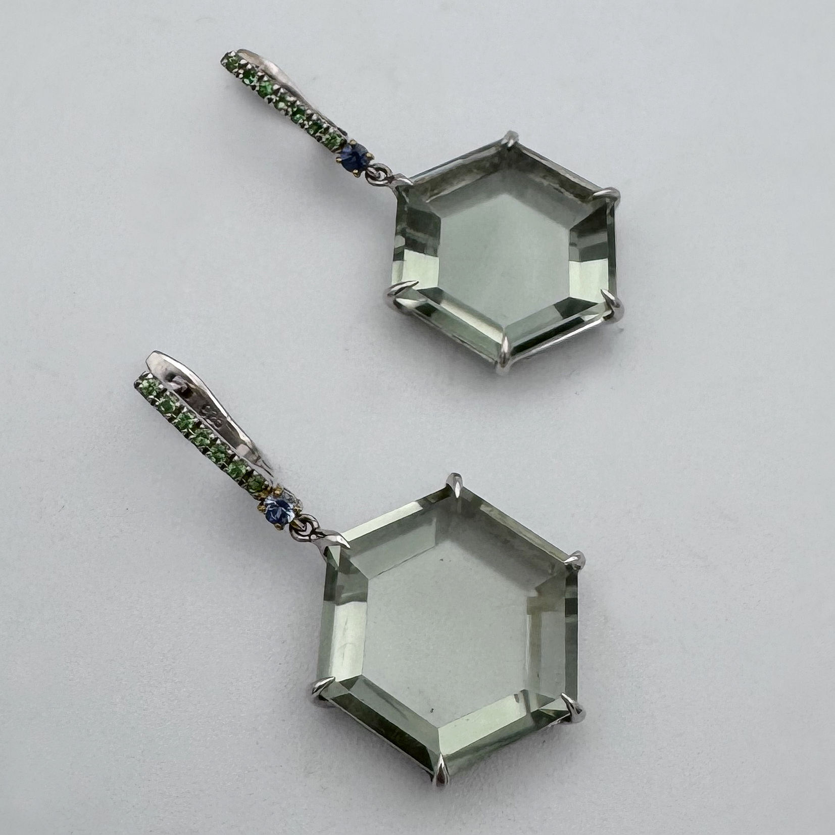 Green Amethyst & Tanzanite Earrings by Val Nunns