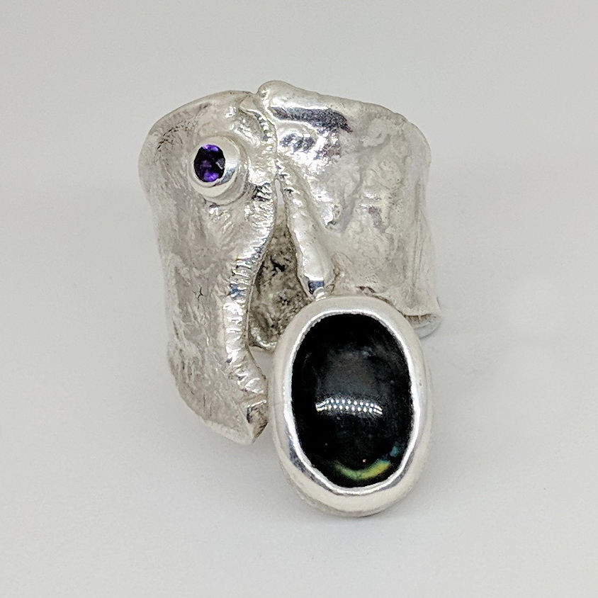 Green Rainbow Labradorite & Amethyst Ring by Andrea Russell