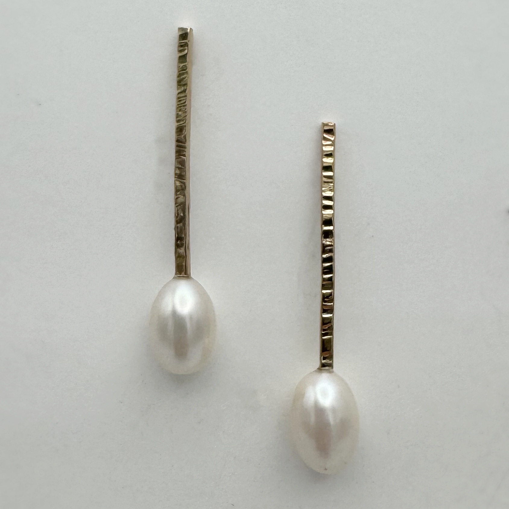 Hammered 14kt. Gold-Filled Stick Earrings with Baroque Pearls by Chi’s Creations