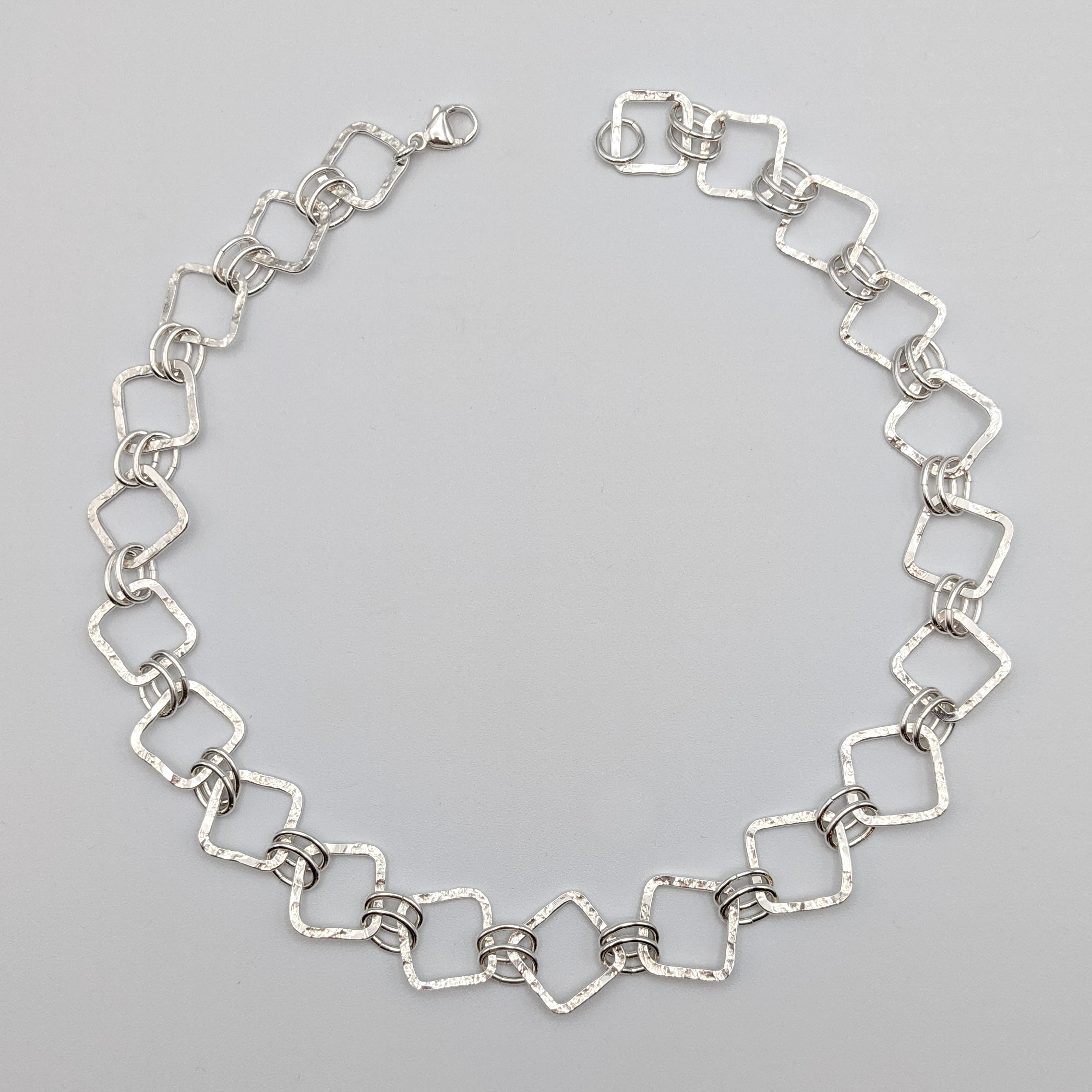 Hammered Diamond-Shaped Link Necklace by A & R Jewellery
