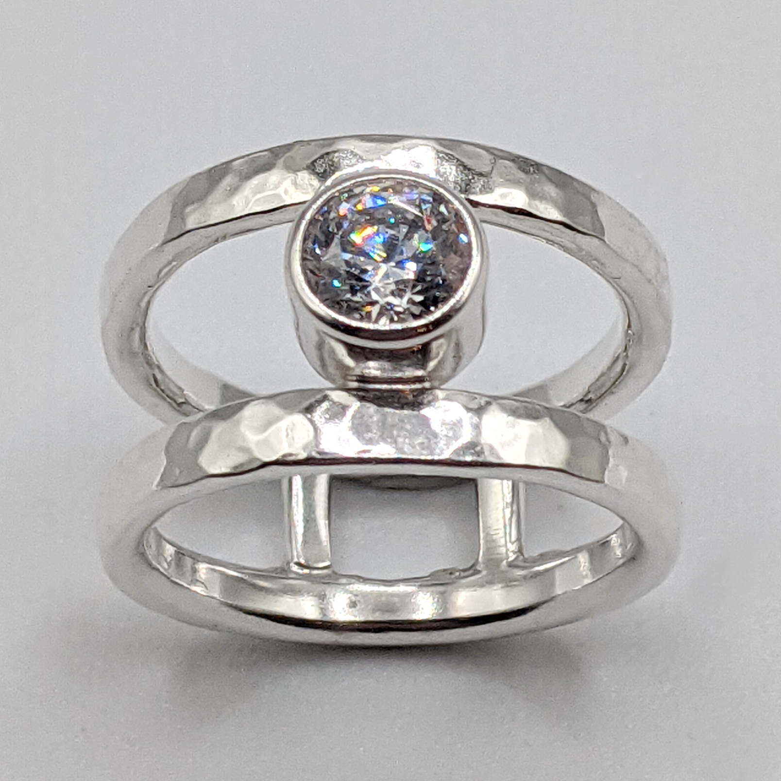 Hammered Double Band Ring with Cubic Zirconia by A & R Jewellery