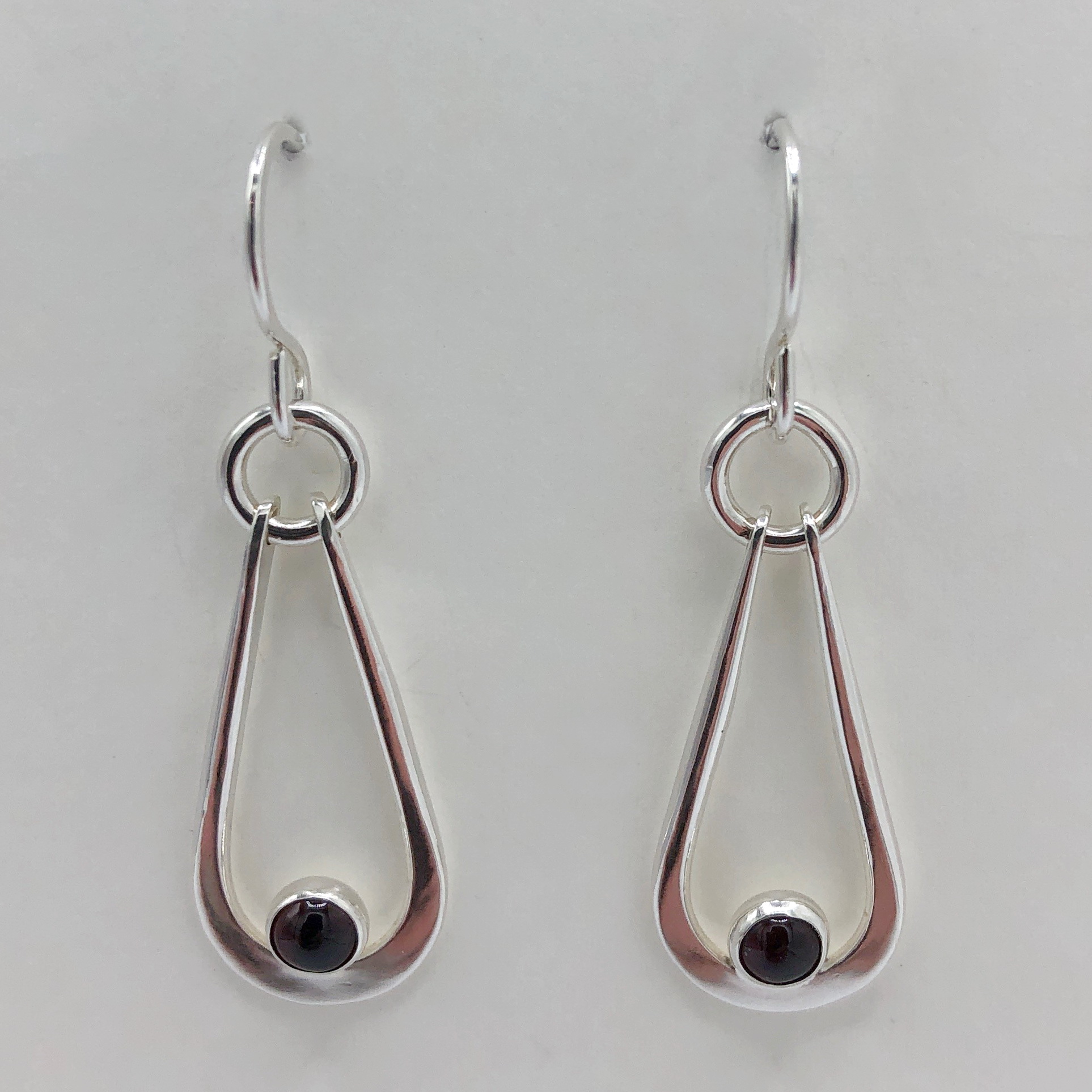 Hollow Teardrop Earrings with Garnet by A & R Jewellery