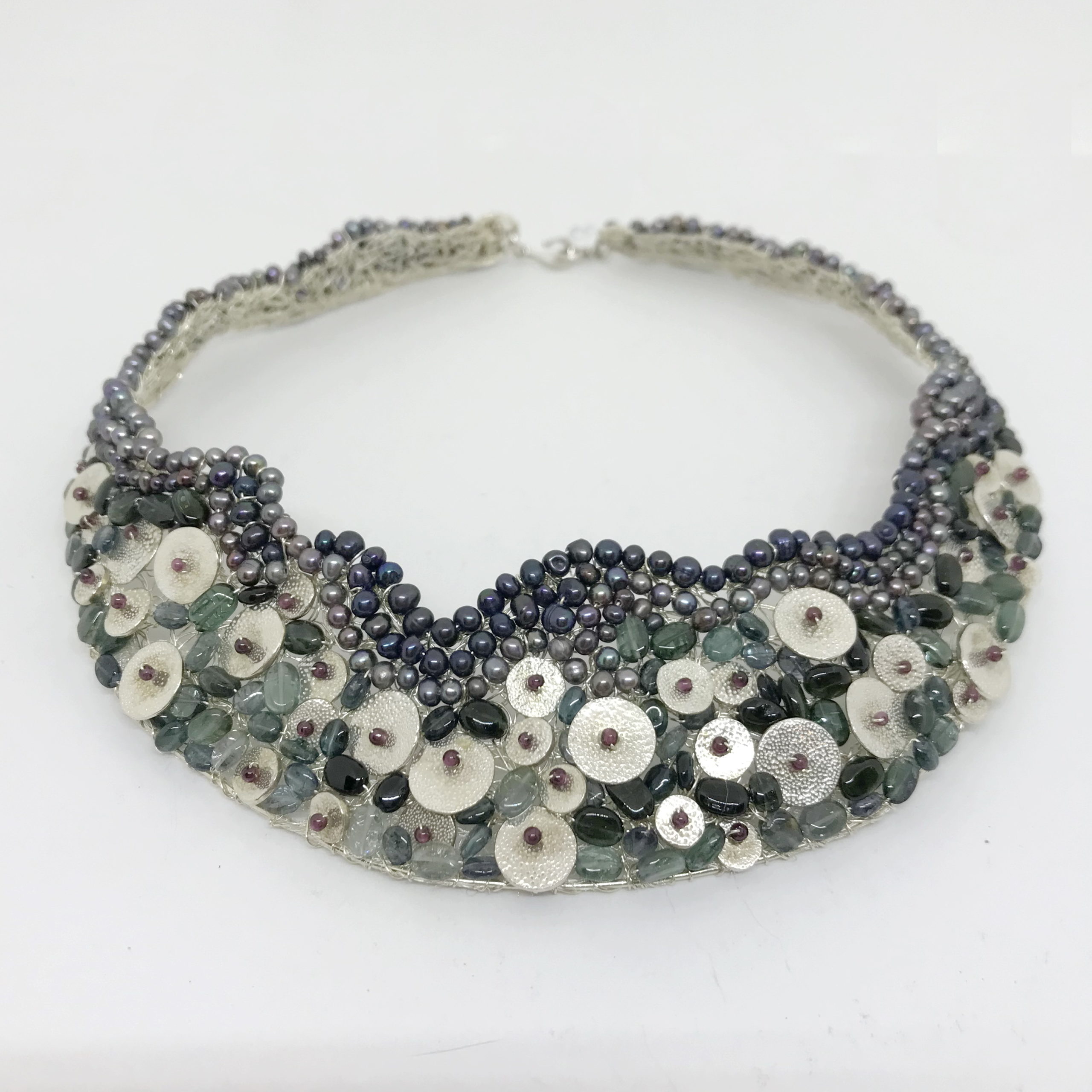 Fine Silver, crocheted Fine Silver, Tourmaline, Freshwater Pearls, Garnet