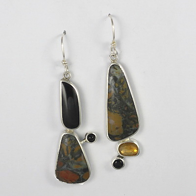 Jasper, Black Jade, Tourmaline Earrings by Brenda Roy