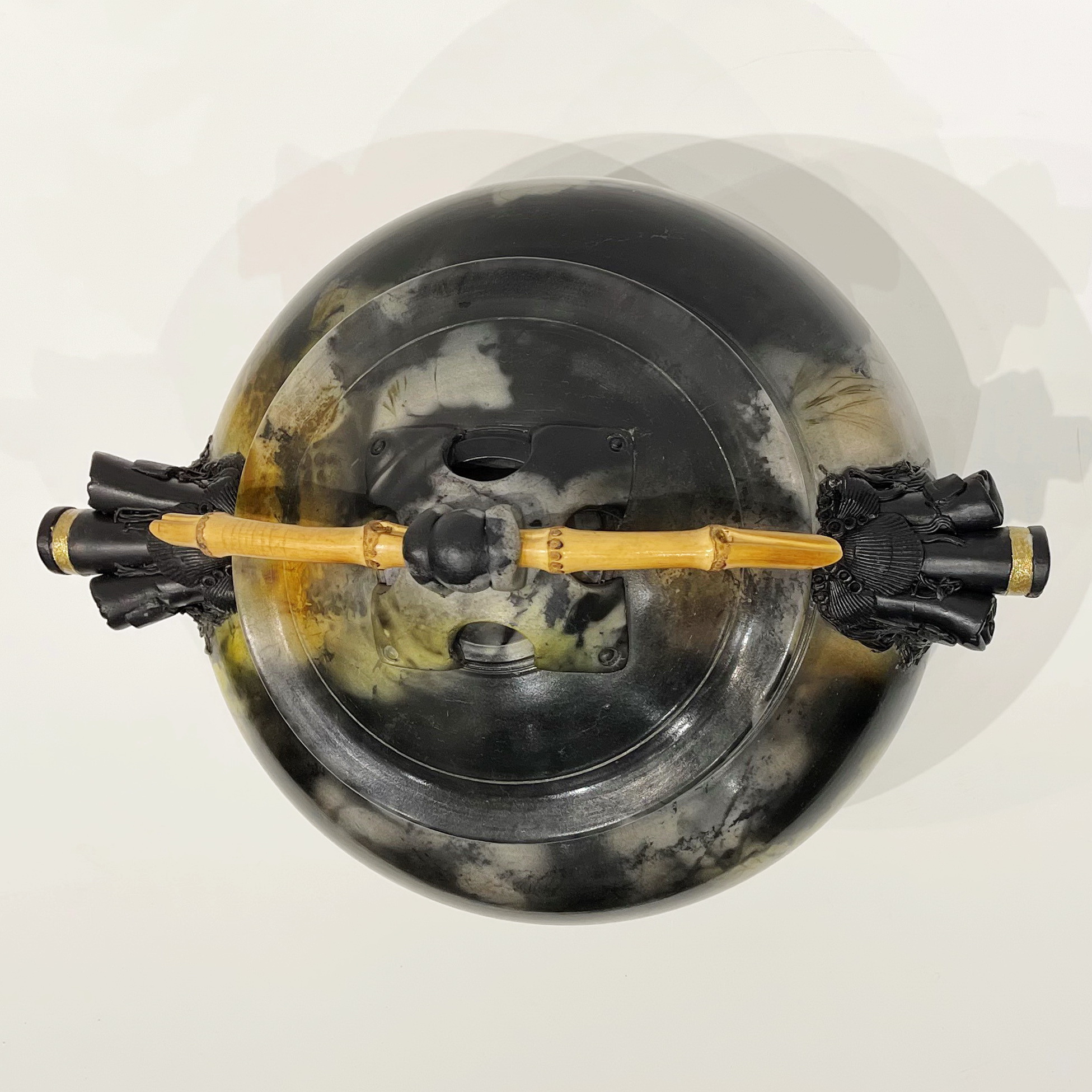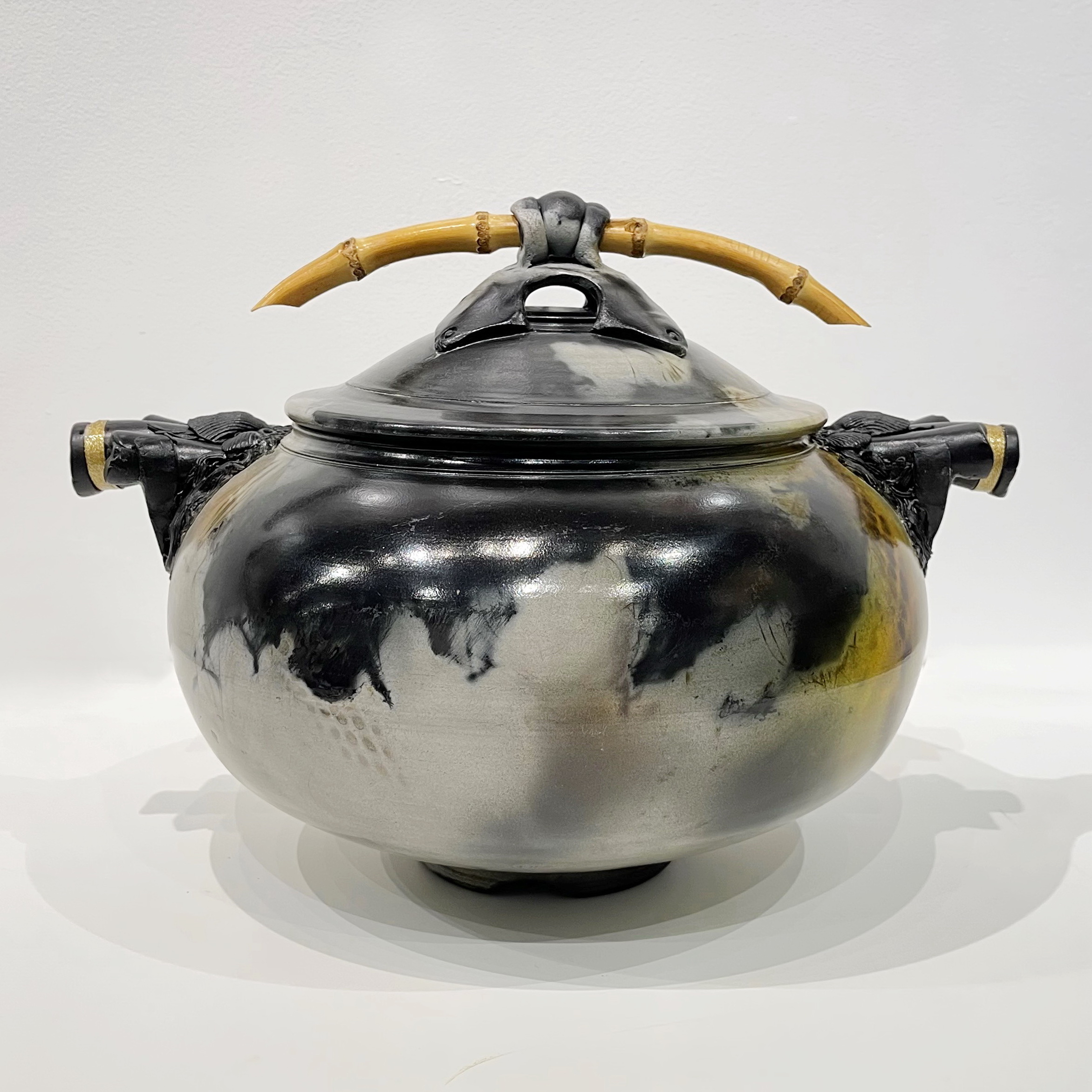 Large Burnished Vase with Gold Inlay and Bamboo Insert Lid by Geoff Searle