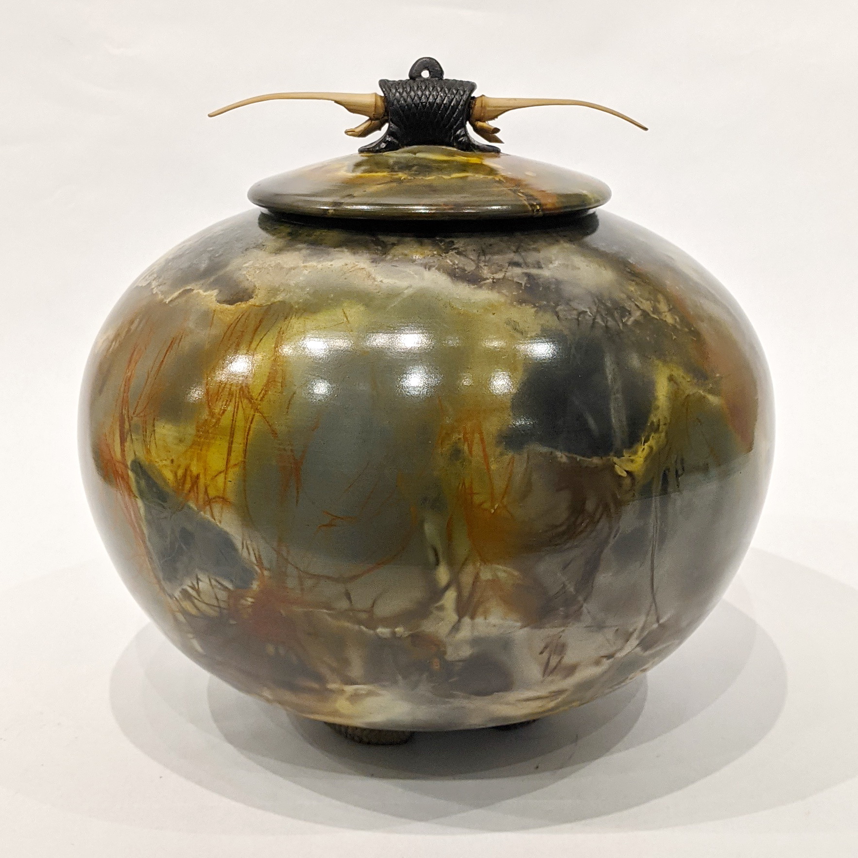 Large Ginger Jar with Horn Lid by Geoff Searle